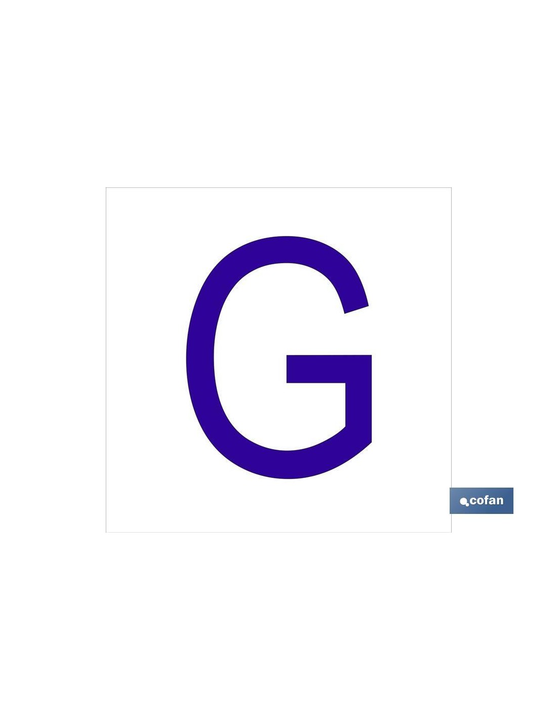 G Letra en glasspack adhesivo con el fondo blanco y carácter azul con medida en 62 x 62mm. El diseño de la señal puede variar, pero en ningún caso se variará el significado de la misma.