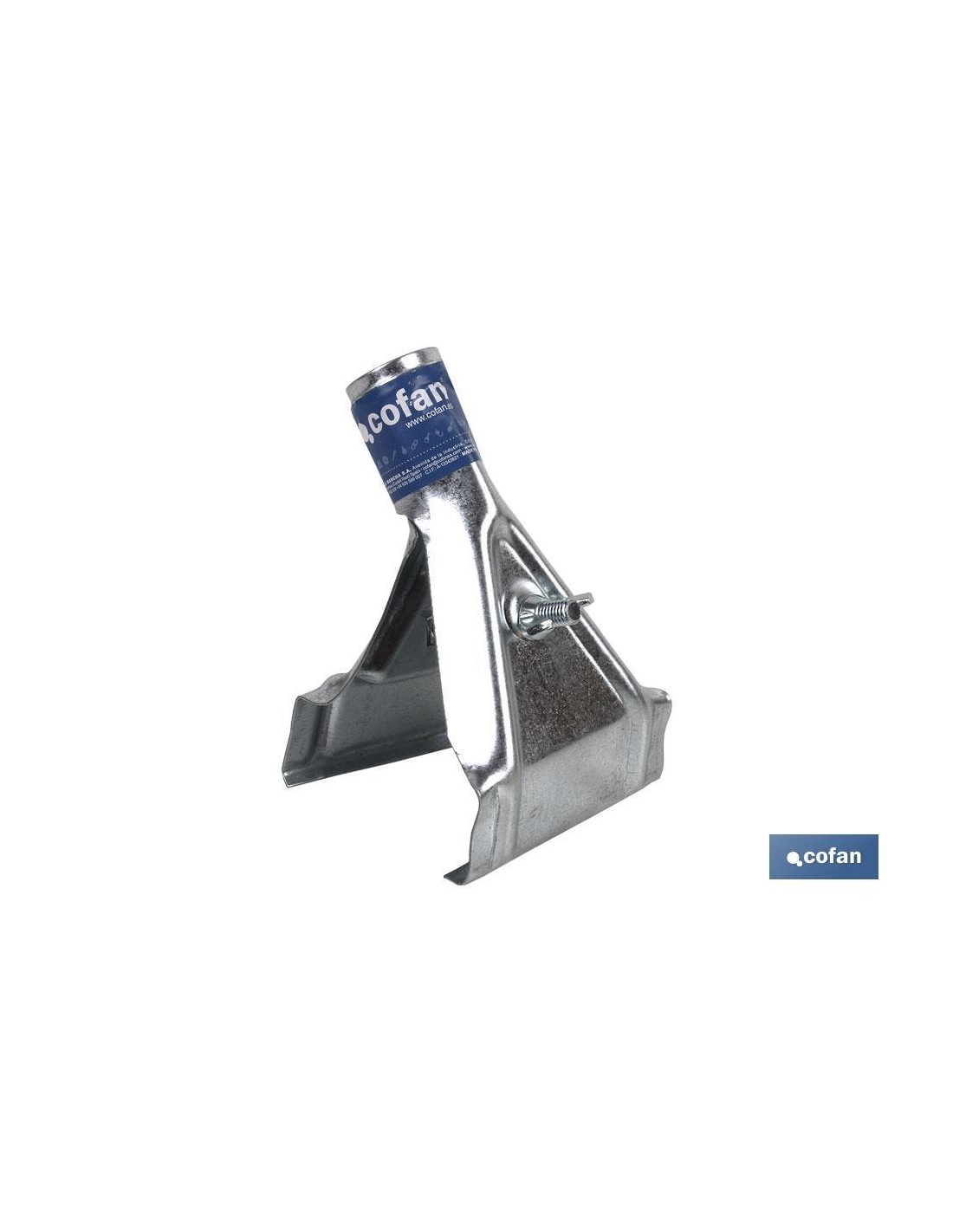Garra o grapa metálica para cepillos de barrendero con soporte de madera. Grapa para cepillo de barrendero. Color galvanizado o plateado. Para mangos de Ø 28 mm. Apertura y cierre con tornillo y tuerca de mariposa.