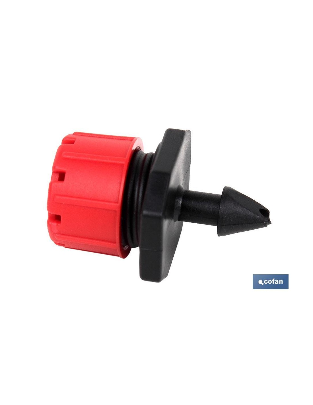 Goteros regulables para riego por goteo. Su uso está recomendado para el ámbito de la jardinería y agricultura. Gracias a su diseño manejable, pueden adaptarse a todo tipo de cultivos, plantas y árboles. Estos goteros regulables son unos accesorios de riego indispensables para todo tipo de riegos automáticos, dotando a las plantas del agua necesaria sin malgastarla. Su diseño habilita una dosificación eficaz y optimizada. Se trata de un producto manejable y adaptable que puede utilizarse para construir sistemas de riego completos y funcionales. Estos goteros son resistentes y duraderos. Están preparados para resistir golpes y arañazos. Además, son resistentes a productos químicos como, por ejemplo, insecticidas y fertilizantes.