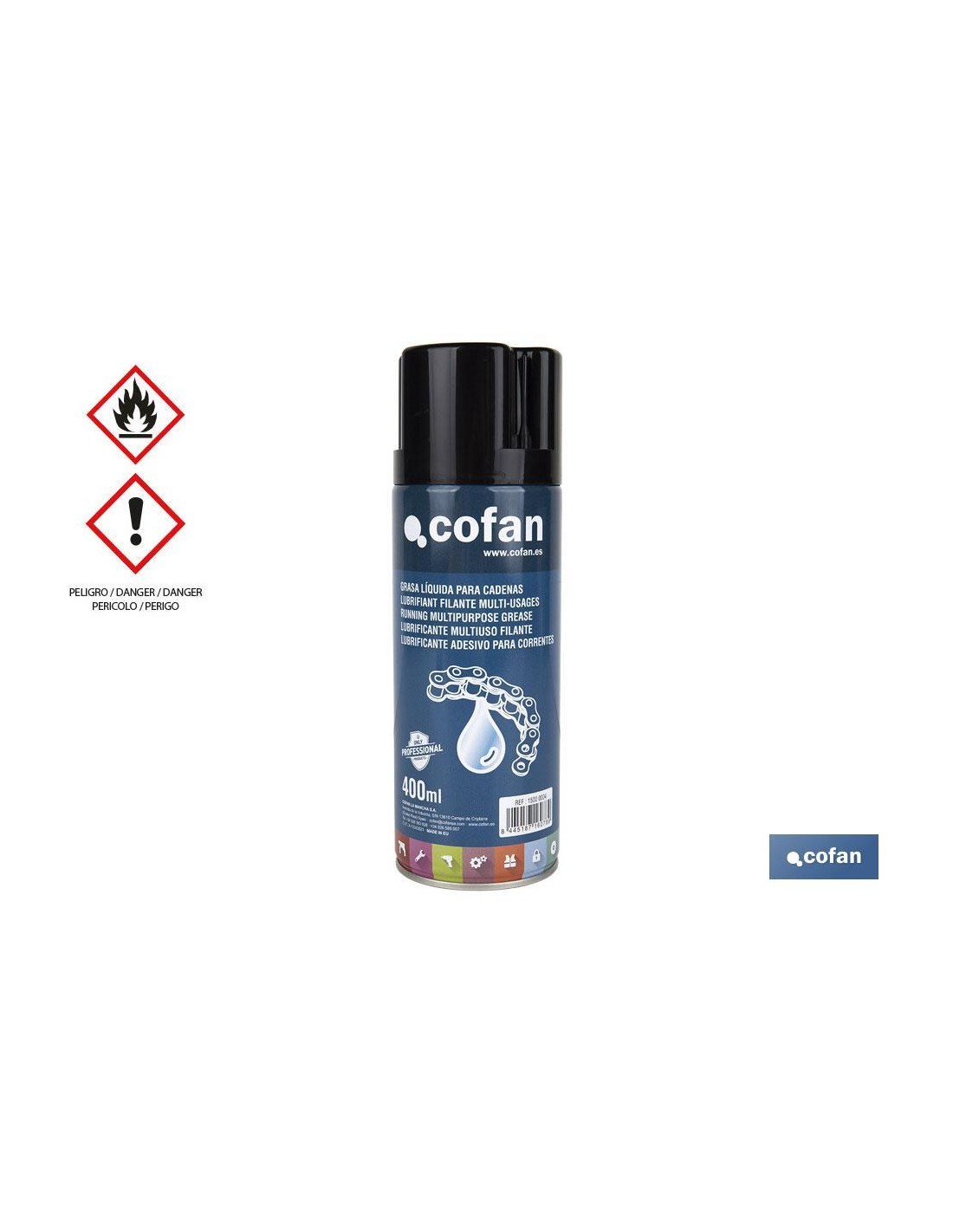 Grasa líquida adhesiva para cadenas en spray de 400 ml. Esta grasa contiene aditivos que le confieren propiedades anticorrosión y antidesgaste, y es ideal para diversas aplicaciones. Posee cualidades adhesivas para una lubricación duradera y protege del deterioro y de la oxidación de las partes tratadas para alargar así la vida útil de las mismas. Su adherencia proporciona un efecto resistente y duradero. Resistente al agua salada y a los fuertes cambios de temperatura. Aerosol extremadamente inflamable. Recipiente a presión: puede reventar si se calienta. Provoca irritación cutánea y ocular grave. Tóxico para los organismos acuáticos, con efectos nocivos duraderos. Utilizar únicamente en exteriores o en un lugar bien ventilado. Evitar su liberación al medio ambiente. Mantener fuera del alcance de los niños. Mantener alejado de fuentes de calor, chispas, llamas abiertas o superficies caliente. No fumar. No pulverizar sobre una llama abierta u otra fuente de ignición. Recipiente a presión: no perforar ni quemar, aun después del uso. Proteger de la luz del sol. No exponer a temperaturas superiores a 50 ºC / 122 ºF.