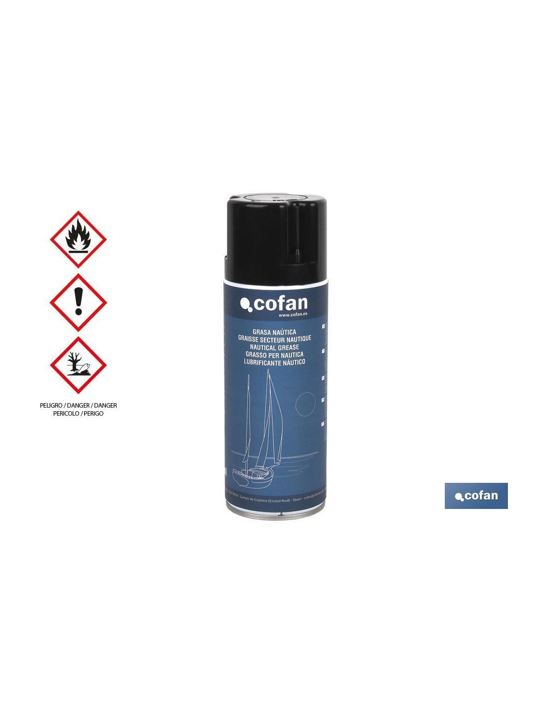 Grasa repelente al agua especial para náutica. Ideal para lubricar zonas que están expuestas al agua salada. Este producto es una solución duradera para la protección de abrazaderas, cables y partes de un barco. Permite mantener las superficies de aplicación lubricadas y en perfecto estado. Ideal para entornos húmedos y de condiciones extremas. Previene la oxidación y la suciedad. Compatible con una variedad de materiales incluyendo metal y plástico. H222, H229 Aerosol extremadamente inflamable. Recipiente a presión: Puede reventar si se calienta. H315 Provoca irritación cutánea. H319 Provoca irritación ocular grave. H336 Puede provocar somnolencia o vértigo. H411 Tóxico para los organismos acuáticos, con efectos nocivos duraderos. P102 Mantener fuera del alcance de los niños. P210 Mantener alejado del calor, de superficies calientes, de chispas, de llamas abiertas y de cualquier otra fuente de ignición. No fumar. P211 No pulverizar sobre una llama abierta u otra fuente de ignición. P251 No perforar ni quemar, incluso después de su uso. P261 Evitar respirar el aerosol. P271 Utilizar únicamente en exteriores o en un lugar bien ventilado. P273 Evitar su liberación al medio ambiente. P280 Llevar guantes, ropa de protección, equipo de protección para los ojos y la cara. P302 + P352 EN CASO DE CONTACTO CON LA PIEL: Lavar con abundante agua. P304 + P340 EN CASO DE INHALACIÓN: Transportar a la persona al aire libre y mantenerla en una posición que le facilite la respiración. P305 + P351 + P338 EN CASO DE CONTACTO CON LOS OJOS: Enjuagar con agua cuidadosamente durante varios minutos. Quitar las lentes de contacto cuando estén presentes y pueda hacerse con facilidad. Proseguir con el lavado. P403 + P233 Almacenar en un lugar bien ventilado. Mantener el recipiente cerrado herméticamente. P410 + P412 Proteger de la luz del sol. No exponer a temperaturas superiores a 50 °C/122 °F. Contiene: hidrocarburos C6 isoalcanos.