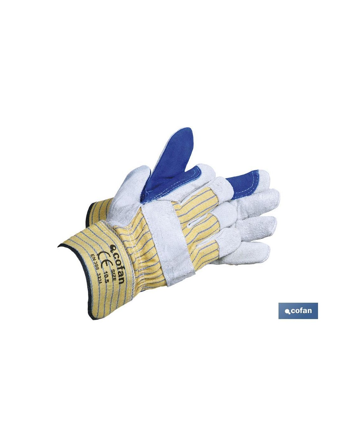 Guantes de serraje americano estándar. Especiales para carga y descarga de mercancías y manejo de herramienta manual. Su diseño industrial es resistente y duradero. Estos guantes están diseñados para realizar trabajos continuos de carga y descarga, manipulación de objetos, embalajes y mercancía en general. Son cómodos y fáciles de poner y quitar. Protegen las manos de rozaduras y golpes. Además, evitan el contacto directo de sustancias perjudiciales con la piel. También son totalmente válidos para multitud de tareas como mecánica, carpintería, agricultura, recolección, construcción, etc.