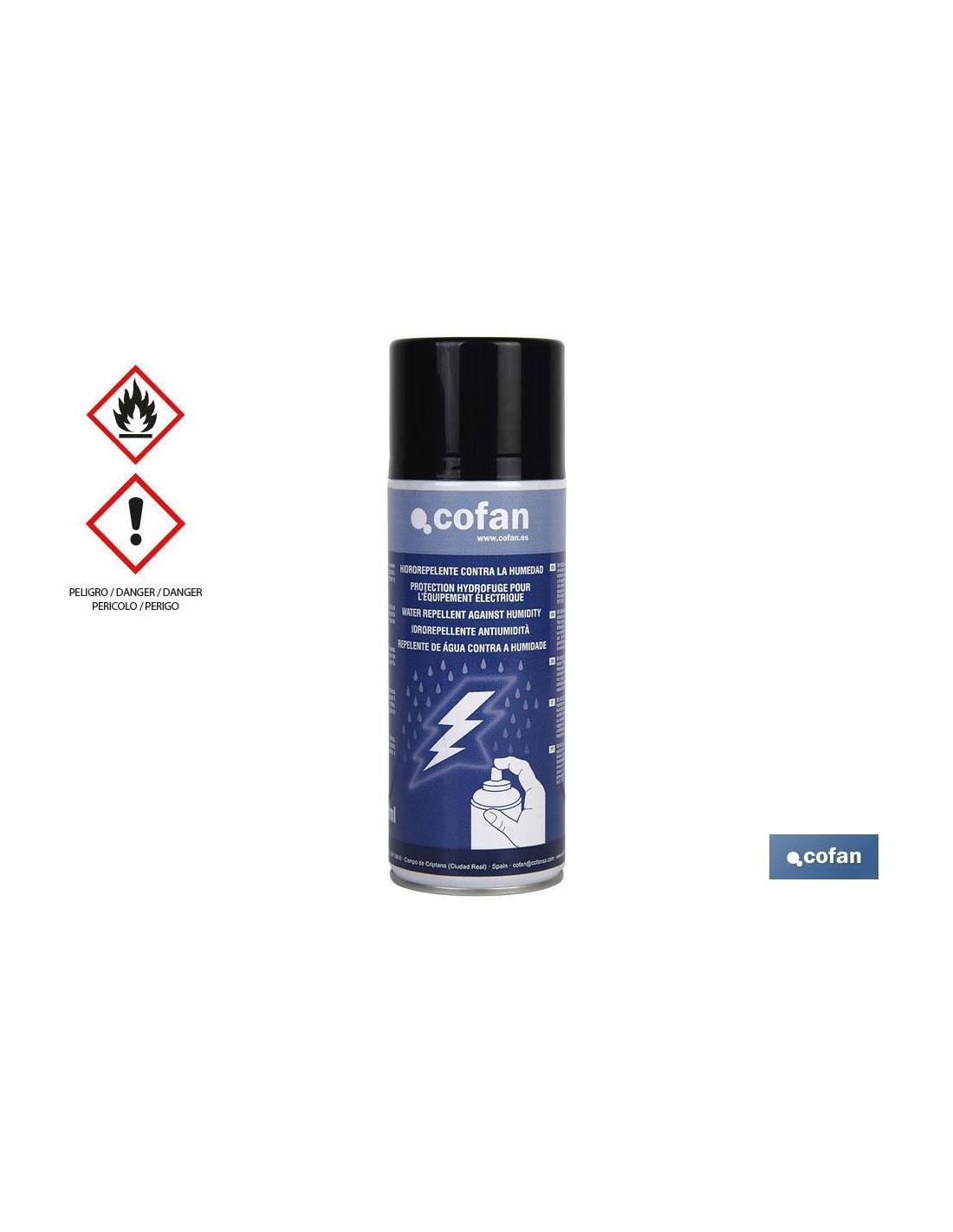 Hidrorrepelente contra la humedad de 400 ml. Proporciona un tratamiento superficial hidro-oleorrepelente, duradero y transparente. Previene las manchas de aceite, grasa, residuos y bebidas. El hidrorrepelente protector es usado para equipos electrónicos y materiales expuestos a la humedad. Este producto se caracteriza por sus propiedades impermeabilizantes que proporcionan un efecto de larga duración y calidad. Previene cortes eléctricos debidos a humedad o la condensación. Ideal para cualquier material expuesto a condiciones adversas de humedad. Aerosol extremadamente inflamable. Recipiente a presión:puede reventar si se calienta. Provoca irritación cutánea y ocular grave. Evitar su liberación al medio ambiente. Mantener fuera del alcance de los niños. Mantener alejado de fuentes de calor, chispas, llamas abiertas o superficies caliente. No fumar. No pulverizar sobre una llama abierta u otra fuente de ignición. Recipiente a presión: no perforar ni quemar, aun despues del uso. Proteger de la luz del sol. No exponer a temperaturas superiores a 50 ºC / 122 ºF.