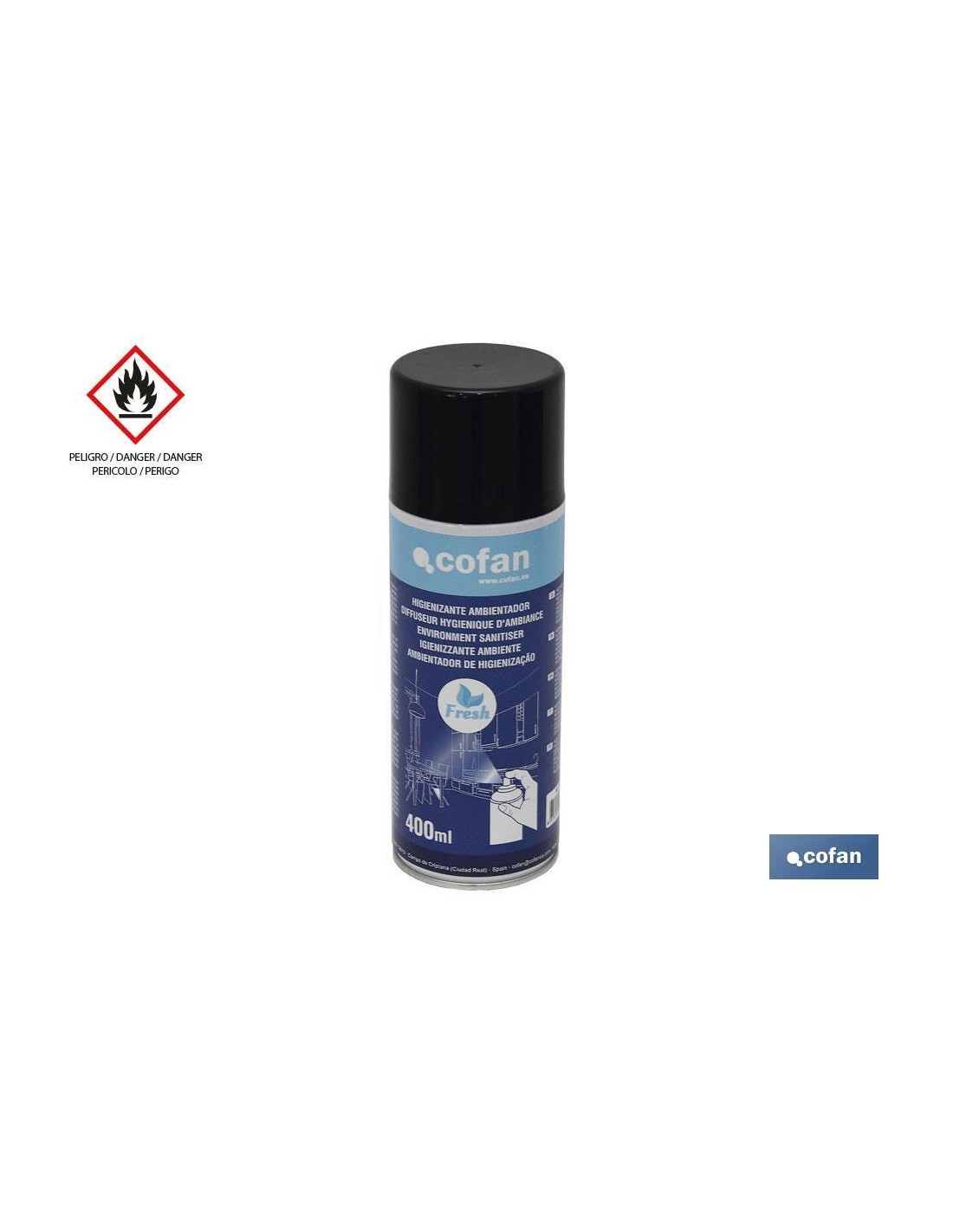 Aerosol seco ideal para una acción higienizante rápida y eficaz en distintos ambientes tales como la casa, oficinas, habitaciones de hotel, coches, vehículos de camping, autobuses, embarcaciones, etc. Higienizador para ambientes. Elimina malos olores causados por bacterias. Es adecuado tanto para sistemas de aire acondicionado doméstico como de automóvil. Envase de 400 ml de capacidad. Peligro. Indicaciones de Peligro: H222+H229 Aerosol extremadamente inflamable. Recipiente a presión: Puede reventar si se calienta.
