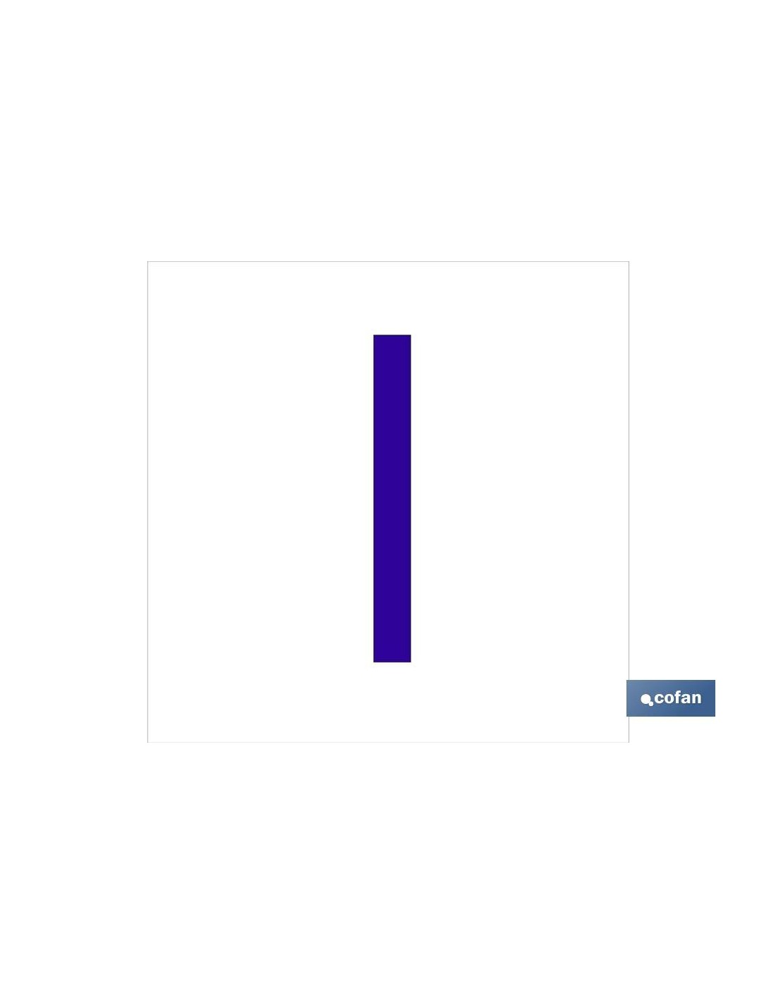 I Letra en glasspack adhesivo con el fondo blanco y carácter azul con medida en 62 x 62mm. El diseño de la señal puede variar, pero en ningún caso se variará el significado de la misma.