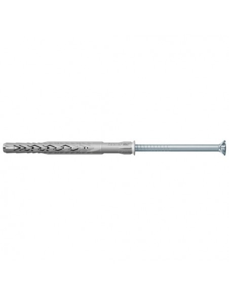 La fijación para marcos SXRL-T de fischer está homologada con el tornillo de cabeza avellanada de fischer con alojamiento T40 para fijaciones múltiples de sistemas no portantes en mampostería, hormigón y hormigón poroso. En la mampostería perforada, las dos zonas de expansión del taco conducen la fuerza uniformemente, en el hormigón poroso y en los materiales macizos estas se unen a un elemento de expansión largo. Con el tornillo de seguridad de acero electrogalvanizado, la fijación de marco es ideal para fijaciones en interiores como ventanas, armarios, armarios suspendidos o soportes para televisión.