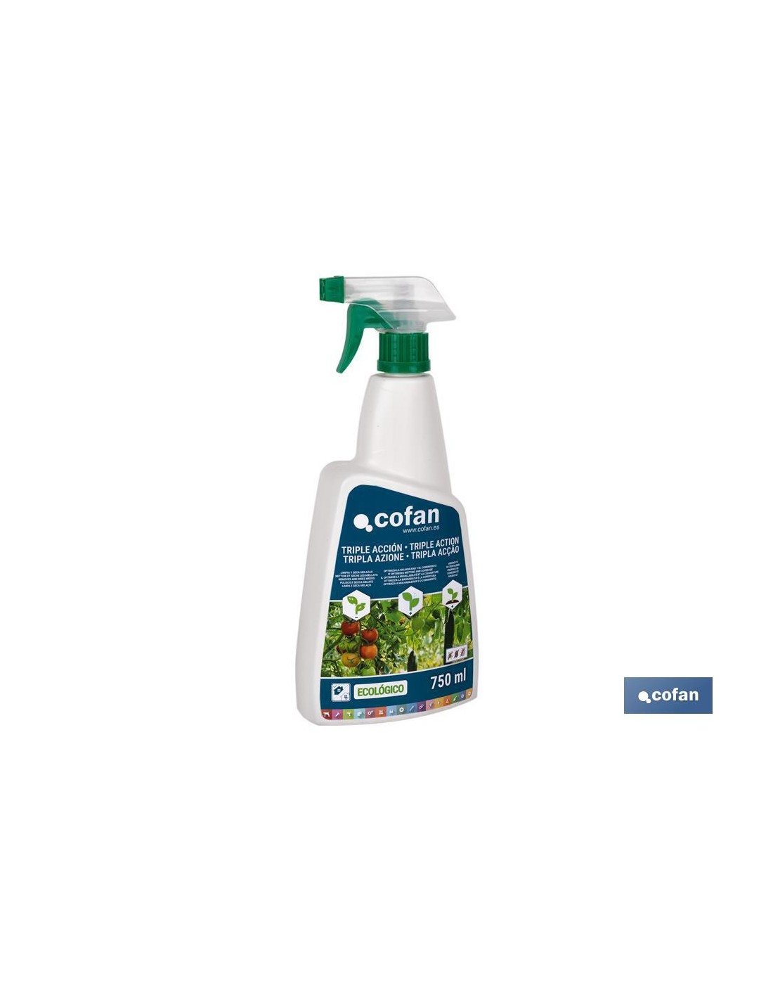 Este producto está formulado para emplearse tanto en plantas de interior como de exterior (balcón, terraza o jardín). Sus tres tipos de acciones lo convierten en un producto muy versátil para el cuidado de las plantas. Acción insecticida sobre mosca blanca, pulgones, psila, orugas, cotonet, araña roja. Acción fungicida sobre oídio, mildiu, botritis. Acción secante, limpia y seca las melazas segregadas por insectos chupadores. Recipiente con capacidad de 750 ml en formato pulverizador.