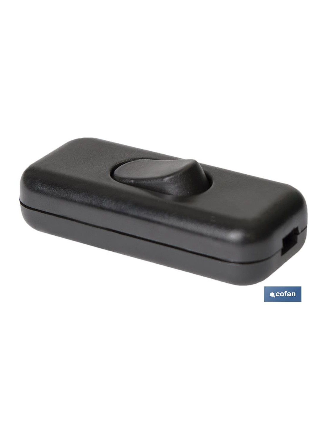 Interruptor de paso para instalación móvil, con tecla basculante de encendido y apagado. Incluye bornes de tornillo. Tensión asignada 250 V. Intensidad 4 A. Grado de protección IP 20. Material aislante libre de halógenos. Color negro.