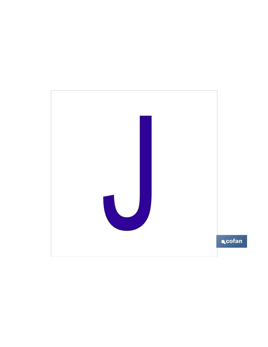 J Letra en glasspack adhesivo con el fondo blanco y carácter azul con medida en 62 x 62mm. El diseño de la señal puede variar, pero en ningún caso se variará el significado de la misma.