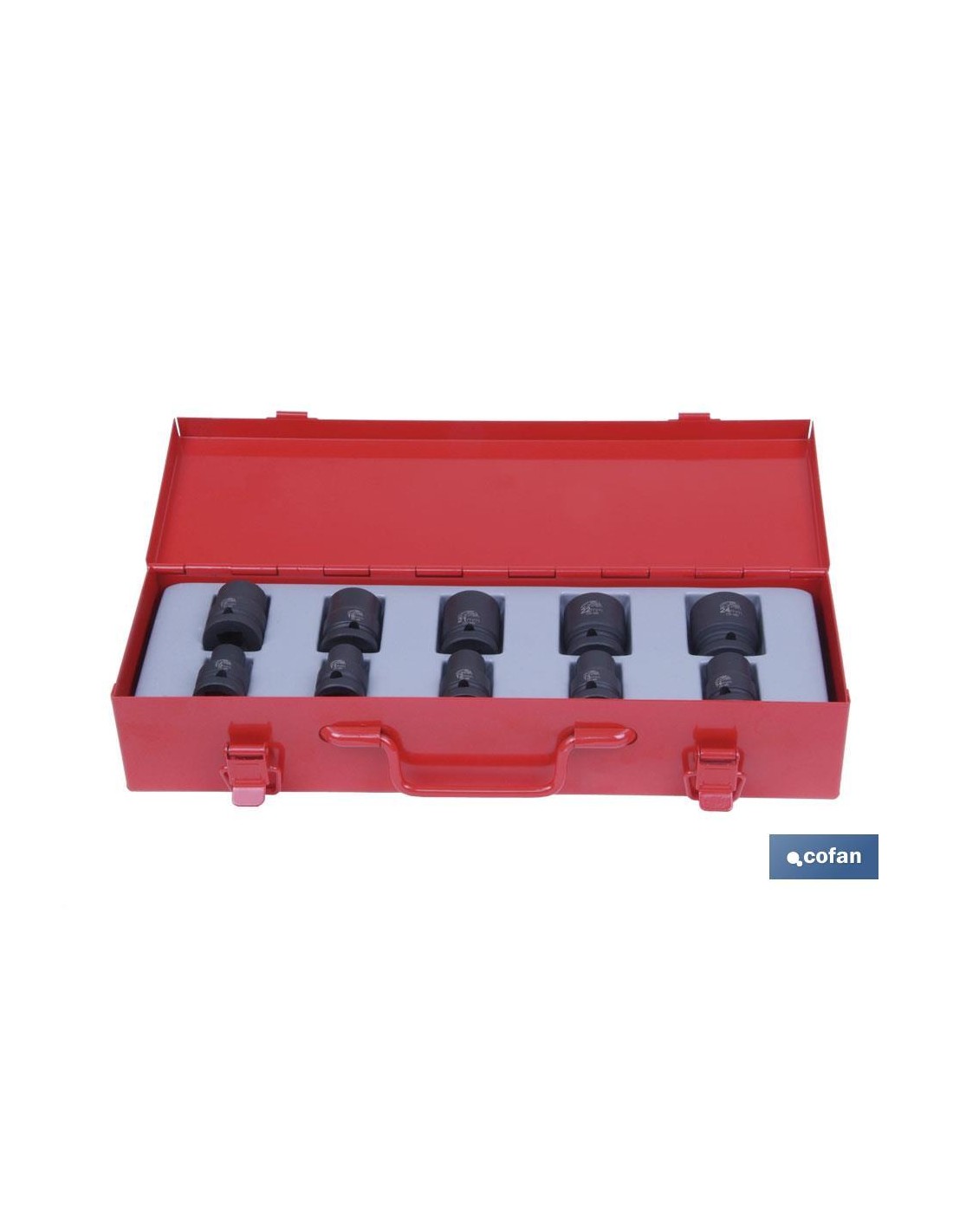 Maletín surtido de 10 Vasos de impacto en 1/2". Medidas sw 10, 11, 12, 13, 14, 17, 19, 21, 22 y 24.