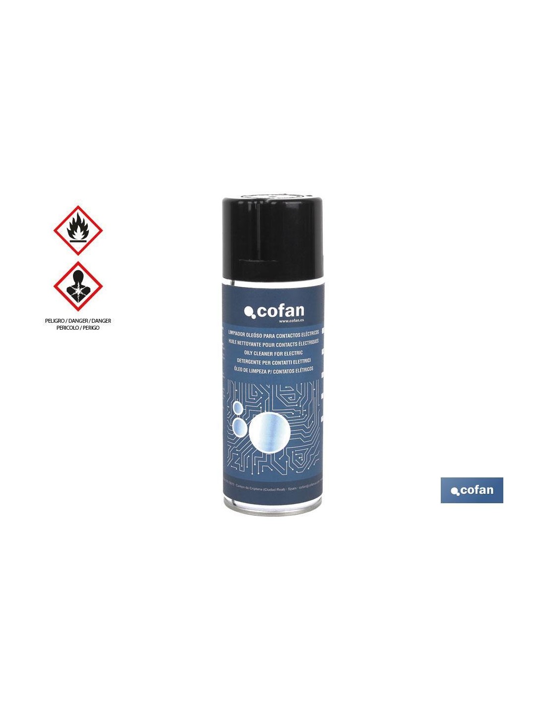 Limpiador oleoso de contactos eléctricos de 400 ml. Producto especial para sistemas eléctricos. Limpiador de residuos y corrosión de contactos eléctricos. Este producto favorece el aumento de la conductividad y reduce las corrientes de fuga. Apropiado para equipos eléctricos, relés, herramientas especiales de medición, contactos, centralitas, semiconductores, etc. El líquido se evapora muy rápido y sin dejar residuos. Puede utilizarse en el hogar o en un ambiente profesional. Aerosol extremadamente inflamable. Recipiente a presión: puede reventar si se calienta. Se sospecha que puede provocar cáncer. Tóxico para los organismos acuáticos, con efectos nocivos duraderos. Utilizar únicamente en exteriores o en un lugar bien ventilado. Evitar su liberación al medio ambiente. Mantener fuera del alcance de los niños. Mantener alejado de fuentes de calor, chispas, llamas abiertas o superficies caliente. No fumar. No pulverizar sobre una llama abierta u otra fuente de ignición. Recipiente a presión: no perforar ni quemar, aun después del uso. Proteger de la luz del sol. No exponer a temperaturas superiores a 50ºC/122ºF. Contiene Tetracloroetileno.