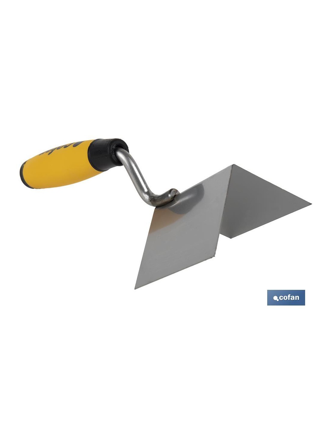 Llana de acero inoxidable con hoja pulida y en ángulo interior para rematar esquinas exteriores.Diseñada y fabricada con mango bi-componente para un agarre ergonómico y sin oscilaciones.Ángulos perfectos de 90°.