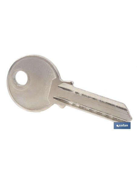 La llave en bruto para el candado antipalanca de 70-90 mm es un accesorio esencial para quienes necesitan una copia de alta calidad o un reemplazo específico para sus candados antipalanca Quality Plus Cofan, referencia 10403113 y 10403114.Su diseño preciso garantiza que cada llave pueda ser labrada para coincidir perfectamente con la cerradura de estos candados, asegurando una operación suave y sin problemas.Fabricada en latón, material robusto y duradero, la llave en bruto ofrece una resistencia superior al desgaste y al uso frecuente. Esto asegura que la llave mantenga su funcionalidad y fiabilidad durante muchos años.Ideal tanto para cerrajeros profesionales como para usuarios domésticos, esta llave en bruto es fácil de trabajar. Su diseño permite un labrado exacto, lo que facilita la creación de copias precisas y funcionales. Esto es especialmente útil para quienes necesitan múltiples copias de llaves o un reemplazo rápido y eficaz.Con esta llave en bruto, puedes estar seguro de que tendrás una copia de respaldo confiable y de alta calidad. Su construcción robusta y su diseño preciso aseguran que la llave funcione sin problemas, proporcionando seguridad y tranquilidad.Medida de la llave en bruto: 53 x 23 mm.