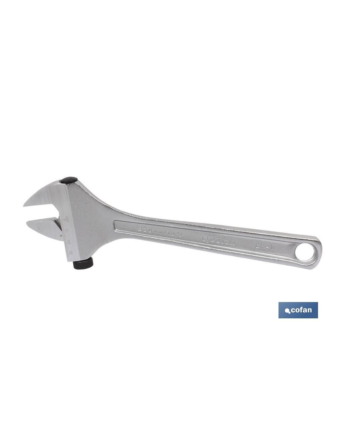 Llave inglesa o ajustable con moleta lateral. Fabricada en acero al cromo-vanadio de alta calidad que le aporta una mayor resistencia y duración. Su superficie con revestimiento de cromo la protege del óxido y la hace resistente a la corrosión. Las medidas van desde 6/15 cm hasta 12/30,5 cm. Sistema de apertura mediante moleta lateral muy preciso. Milimetrada por ambos lados para ajustes rápidos. Se utiliza para tareas de mantenimiento y reparación de automoción, fontanería y reparación en general.