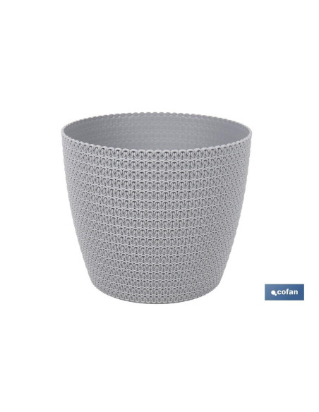 Maceteros decorativos con un diseño trenzado que da un toque elegante y moderno a cualquier rincón de tu hogar. Fabricados en polipropileno, estos maceteros son resistentes y duraderos, perfectos para utilizarse tanto en interiores como en exteriores. Este material garantiza que los maceteros puedan soportar condiciones climáticas adversas como, por ejemplo, el sol, la lluvia o el frío, manteniendo su color y forma gracias a la protección contra los rayos UV. Su diseño trenzado aporta un estilo decorativo que complementa cualquier tipo de planta, convirtiéndolos en un recipiente versátil y práctico para cualquier ambiente. Disponibles en diferentes medidas (10,7 x 8,9 cm, 14,1 x 11,9 cm, 21,5 x 18,5 cm, 25,5 x 22,1 cm, 30,6 x 26,2 cm y 35,9 x 31,5 cm) y capacidades (0,5 l, 1,25 l, 5,2 l, 8,5 l, 15,6 l y 26,5, respectivamente), estos maceteros se suministran en packs de 10 o de 5 unidades y en formato unitario. También están disponibles en diferentes colores, beige, gris o gris oscuro, para que puedas crear una atmósfera acogedora en tu hogar, balcón, terraza o jardín.