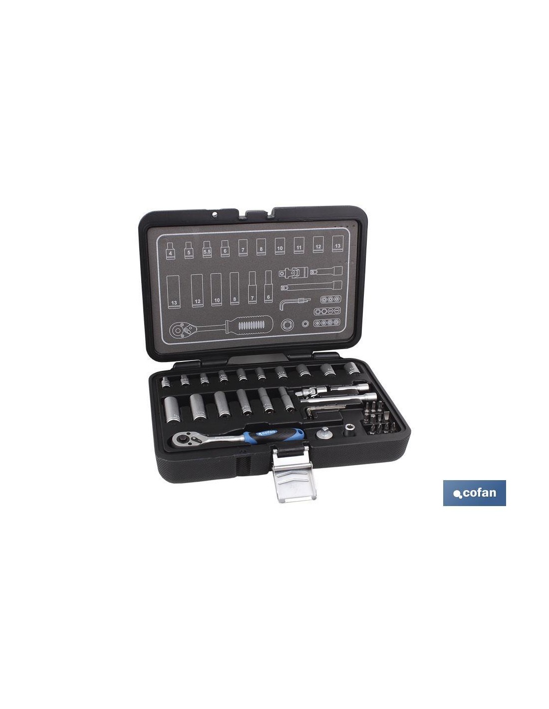 Maletín sets de herramienta profesional 36 pcs de vasos 1/4.