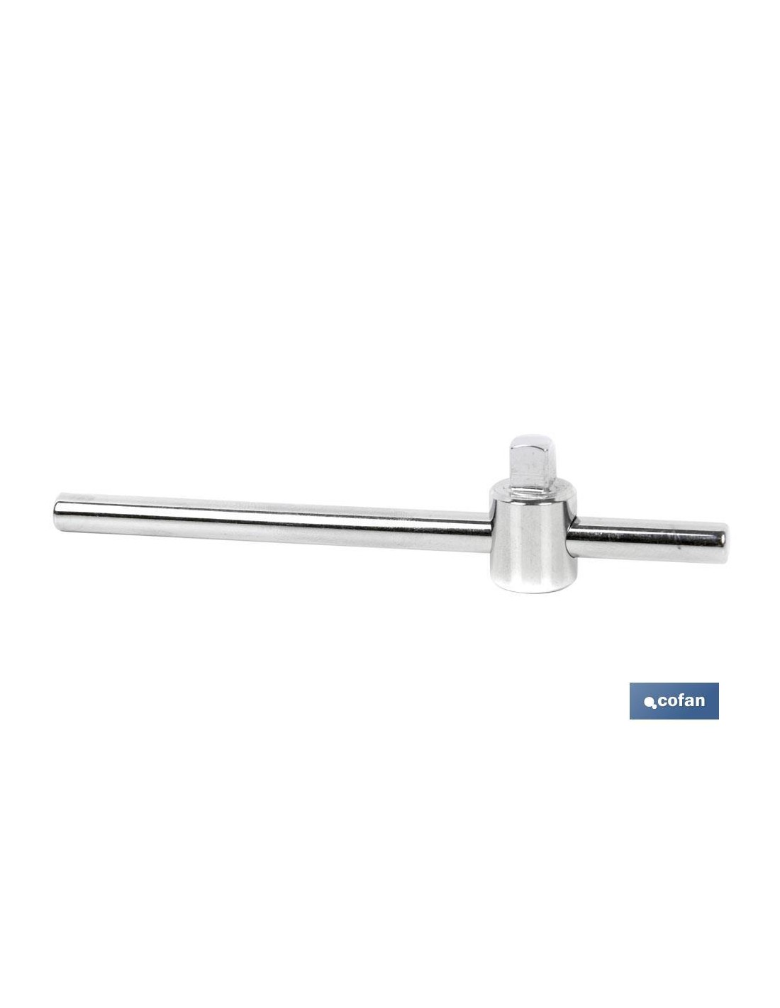 Mango corredizo para vasos en forma de T. Para carraca de medida de 3/8. Fabricado en acero Cromo Vanadio. Más fuerza para el atornillado gracias al efecto de palanca de la forma del mango corredizo. Herramienta manual que se utiliza para apretar y aflojar tornillos con cabeza hexagonal.