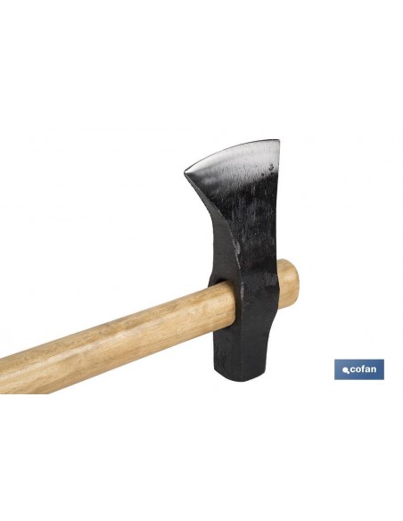 Maza cuña diseñada para ofrecer la máxima funcionalidad y durabilidad para los entusiastas de la agricultura. Esta herramienta está forjada en una sola pieza. Fabricada en acero endurecido y tratada térmicamente para garantizar la durabilidad de la herramienta. La calidad del material hace que la herramienta no se rompa ni se deforme. Además, está equipada con un recubrimiento especial de pintura y barniz para evitar la oxidación de la herramienta, aumentando la vida útil de la herramienta. Cuenta con un ojo ovalado que fortalece la conexión entre la cabeza y el mango, brindando seguridad adicional durante su uso. La maza cuña pesa 3000 g y tiene unas medidas de 24 x 5 cm, con un mango de madera de 90 cm que proporciona un manejo y control excepcionales.