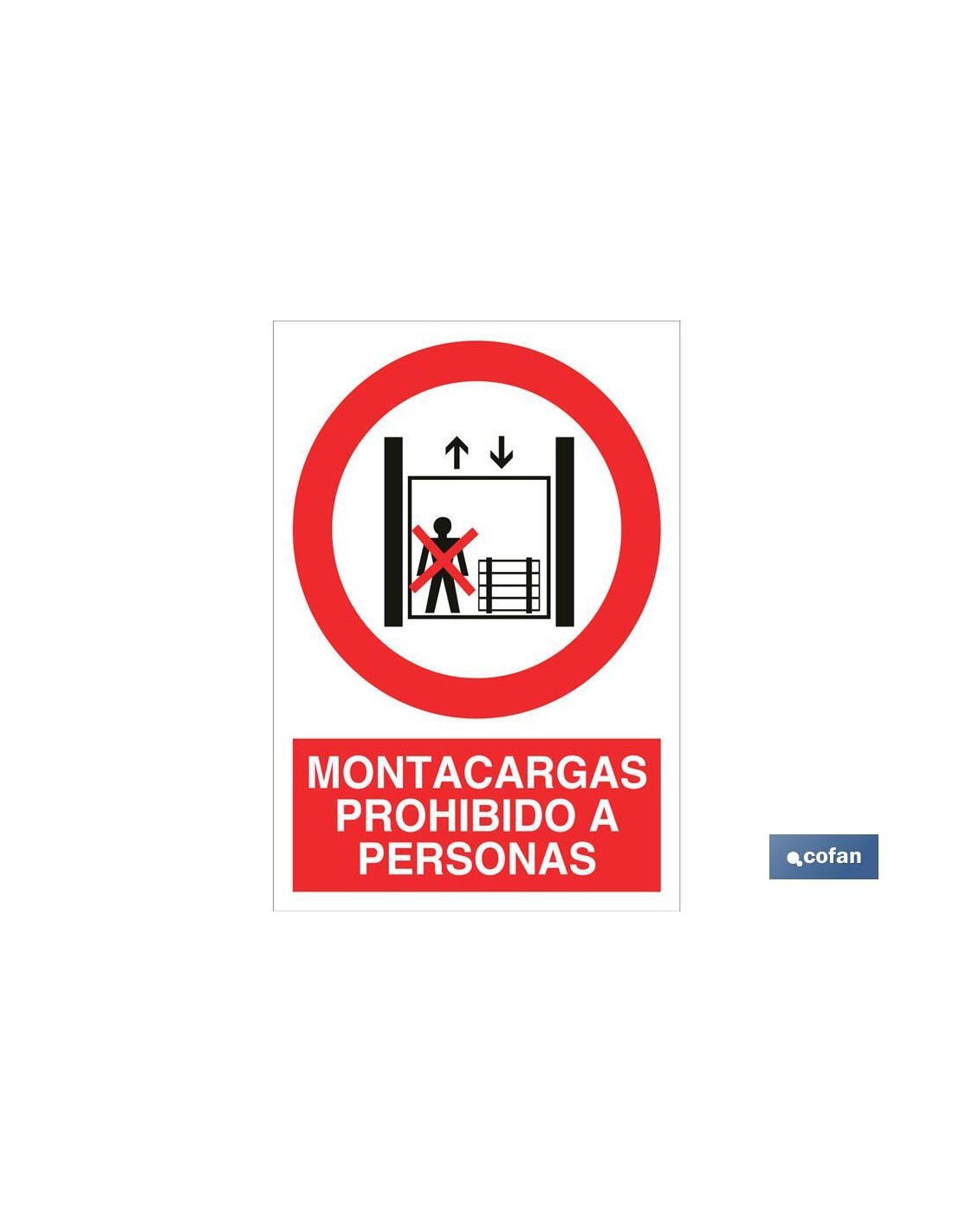 Señal de prohibición Montacargas prohibido a personas. Tamaño y material a elegir. El diseño de la señal puede variar, pero en ningún caso se variará el significado de la misma.