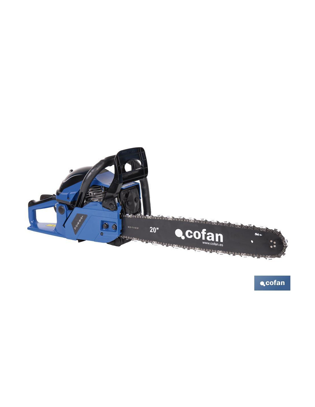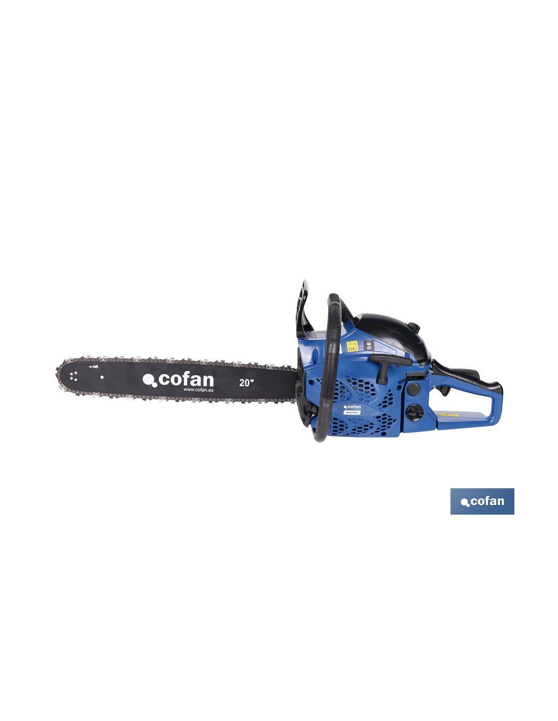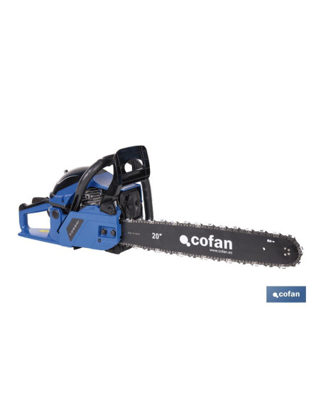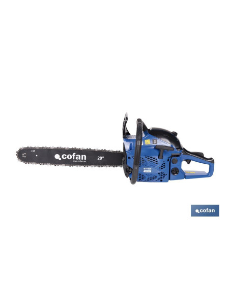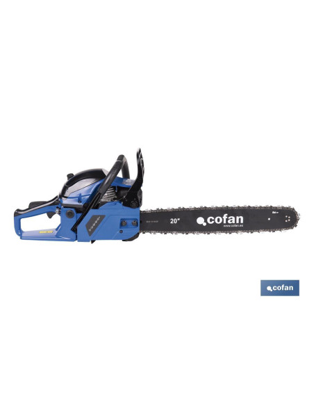 La motosierra con motor de gasolina de 53 cc, modelo Manitoba, es una herramienta robusta, potente y polivalente que está diseñada para realizar diferentes tareas relacionadas con el cuidado de árboles y de la madera. Con un motor de 2 tiempos y una potencia de 2,6 CV, esta herramienta es perfecta para llevar a cabo trabajos como pequeñas talas, troceo de leña, así como labores de poda y de clareo. Su sistema de encendido electrónico y su catalizador cumplen con las normas más estrictas de polución en Europa, ofreciendo eficiencia y respeto por el medio ambiente. Esta motosierra integra un arranque fácil y un carburador con cebador para facilitar el arranque en frío con un mínimo esfuerzo. Su espada de 20 pulgadas y cadena de 0,325 proporcionan cortes precisos y potentes, haciendo que esta herramienta sea perfecta tanto para usuarios aficionados como profesionales. Además, cuenta un sistema antivibración que separa el motor del resto de la máquina para reducir la fatiga durante el trabajo y mejorar la comodidad durante largas horas de uso. Con un peso de 5,1 kg y unas medidas de 88 x 26 x 28 cm, esta motosierra combina potencia y manejabilidad para llevar a cabo tareas exigentes con total control y eficacia.