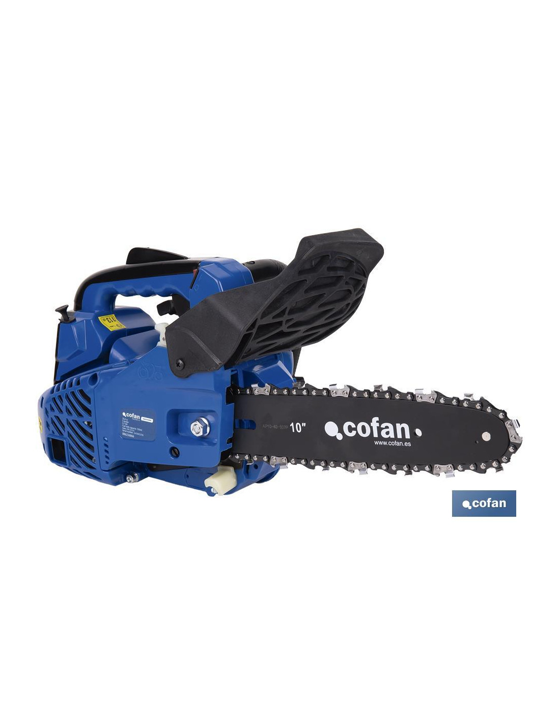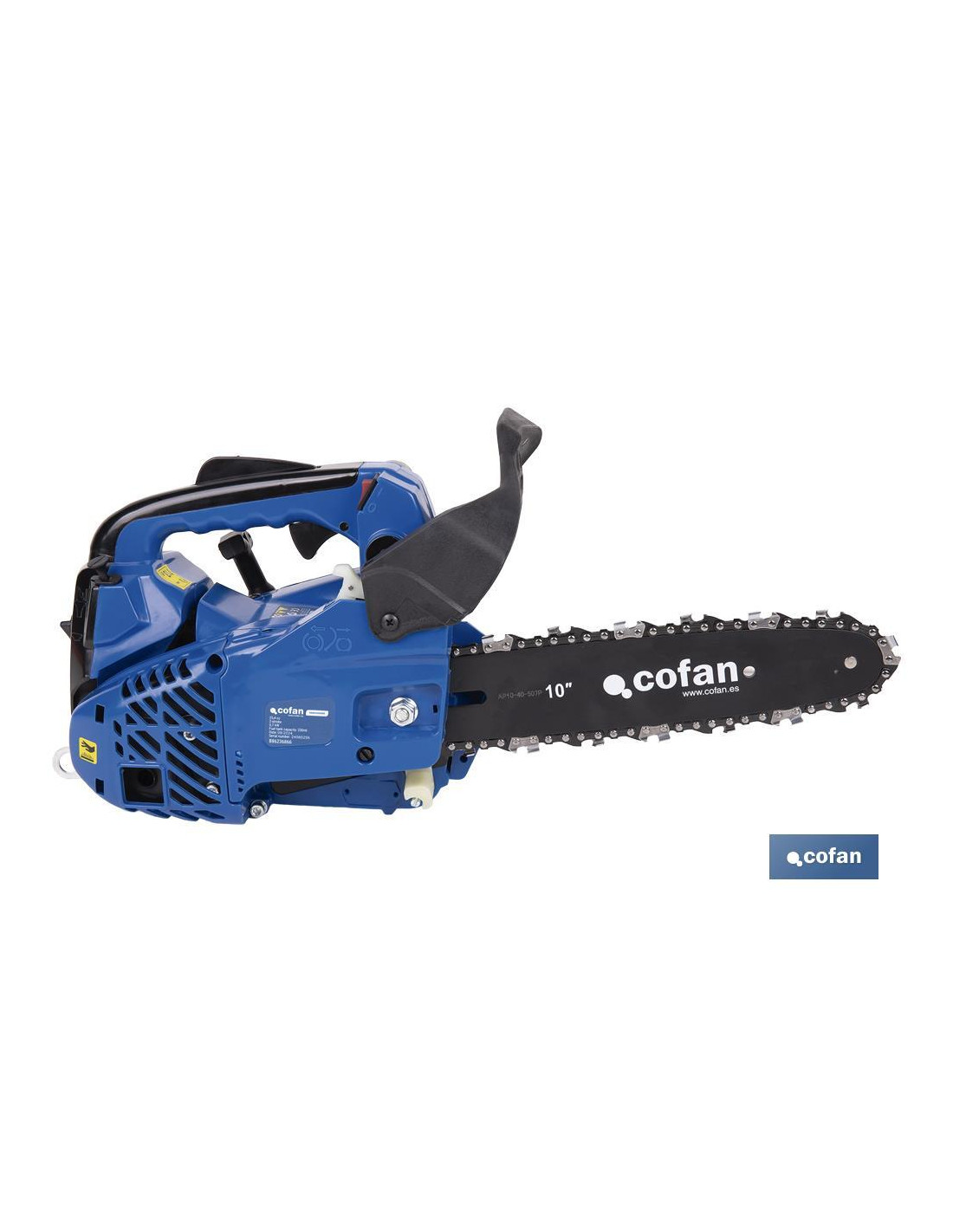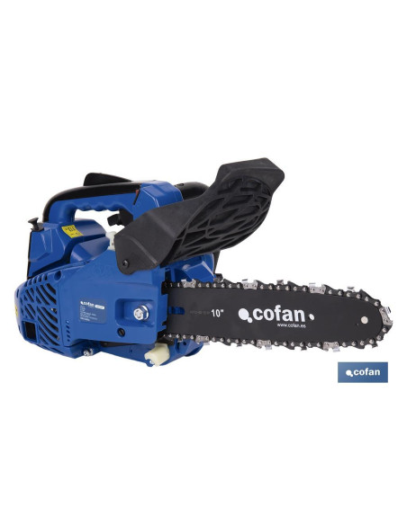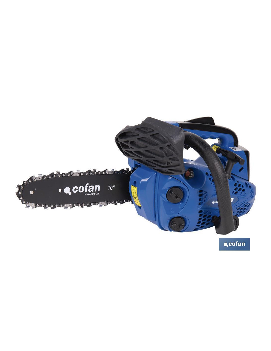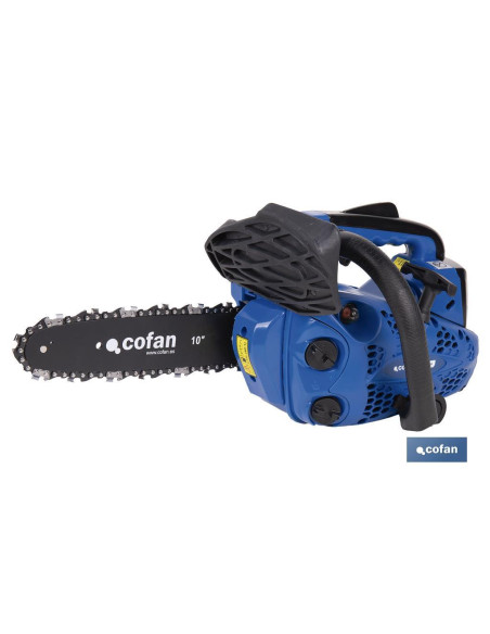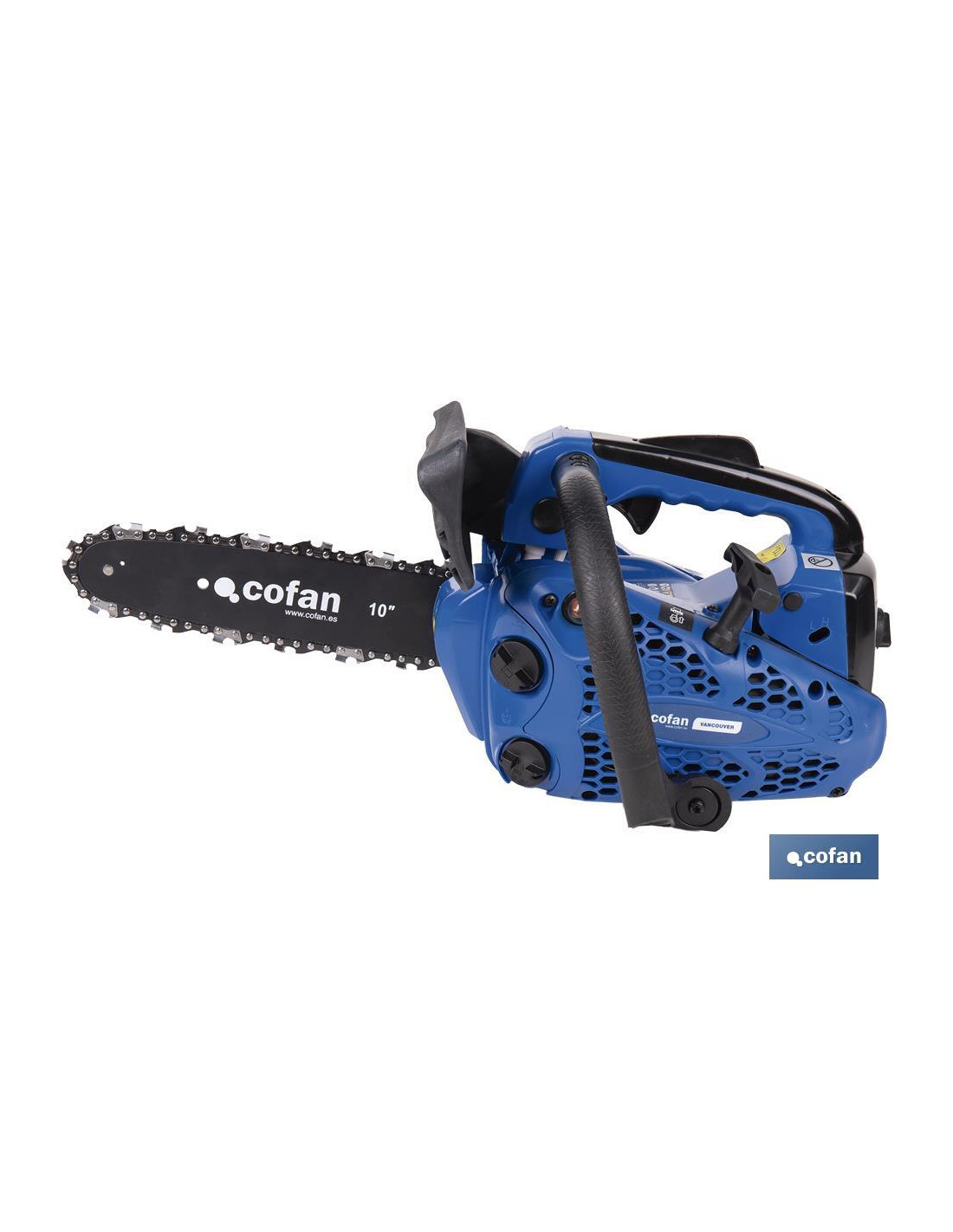 Motosierra de poda con motor de gasolina de 25,4 cc, modelo Vancouver, es una herramienta potente, ligera y eficiente, diseñada para trabajos exigentes. Con un motor de 2 tiempos que proporciona una potencia de 0,9 CV, está equipada con un carburador con cebador que facilita el arranque en frío, ahorrando tiempo y esfuerzo. Integra un sistema antivibración que separa el motor del resto de la máquina para poder trabajar de manera más efectiva durante largas jornadas de trabajo. La espada de 10 pulgadas y la cadena de 3/8 de bajo perfil hacen que la motosierra sea perfecta para realizar trabajos de poda en genera y, especialmente, en altura. Gracias a su peso de 3,5 kg y su diseño compacto con motor de cilindro en horizontal, esta motosierra es fácil de manejar y equilibrar, permitiendo un control óptimo incluso con una sola mano. Se recomienda tener una previa formación para utilizar este tipo de herramienta. Con unas medidas de 50 x 23 x 23 cm, la motosierra está diseñada para maximizar la productividad en tus tareas de poda.
