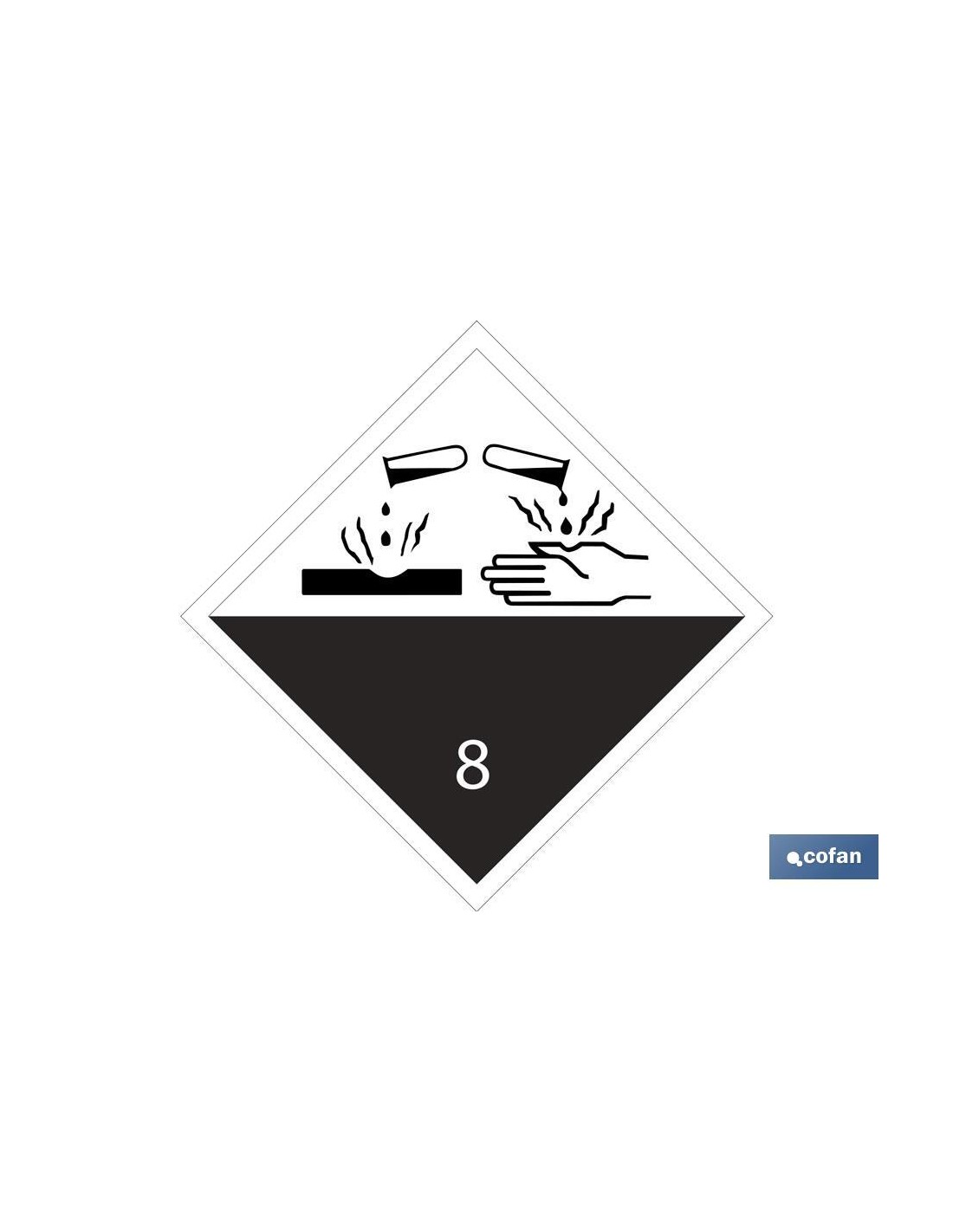 Señalización Adhesivos MATERIAS PELIGROSAS - MATERIAS CORROSIVAS. Medidas 100x100mm y 300x300mm. El diseño de la señal puede variar, pero en ningún caso se variará el significado de la misma.