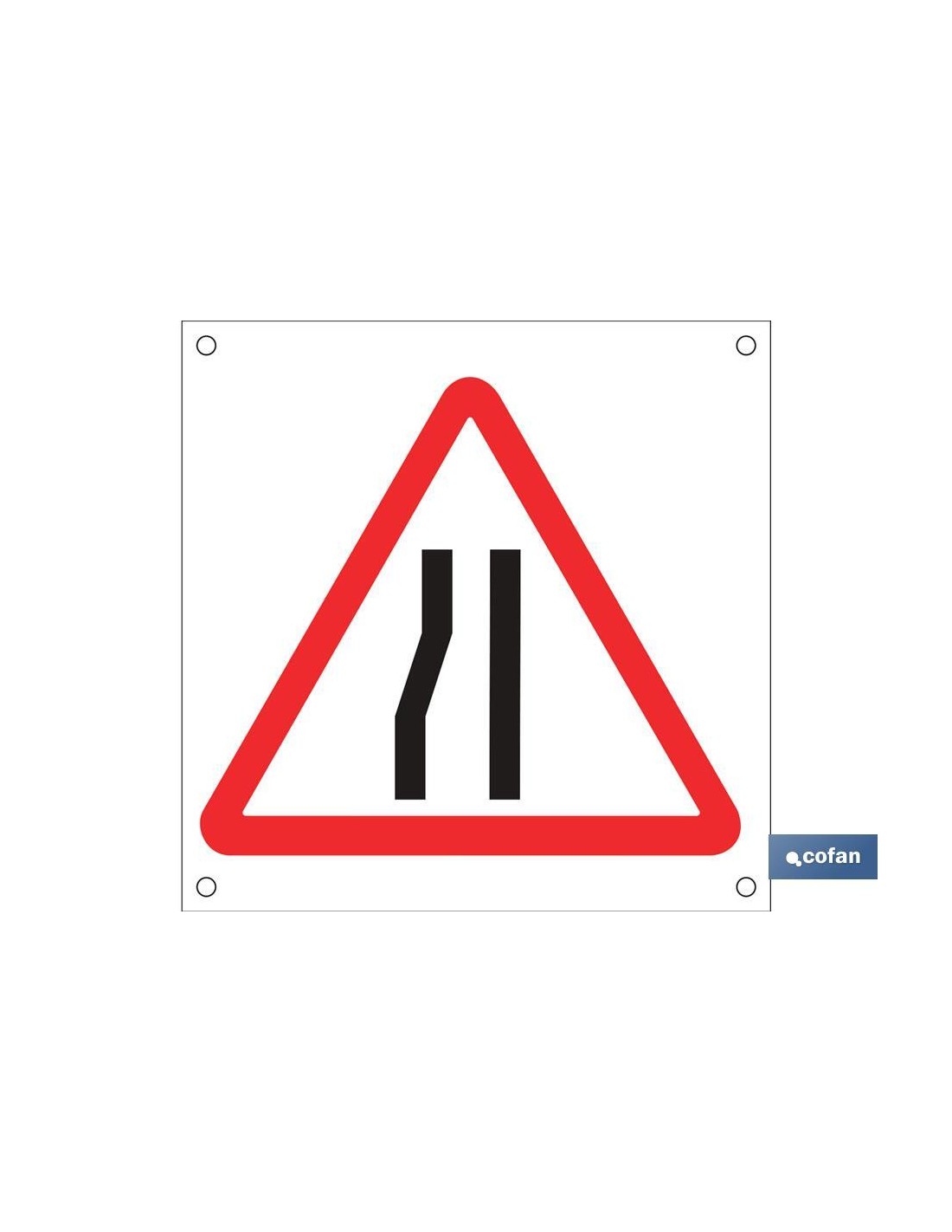 Señal Polipropileno Celular 600x600mm Estrechamiento izquierdo via. El diseño de la señal puede variar, pero en ningún caso se variará el significado de la misma.