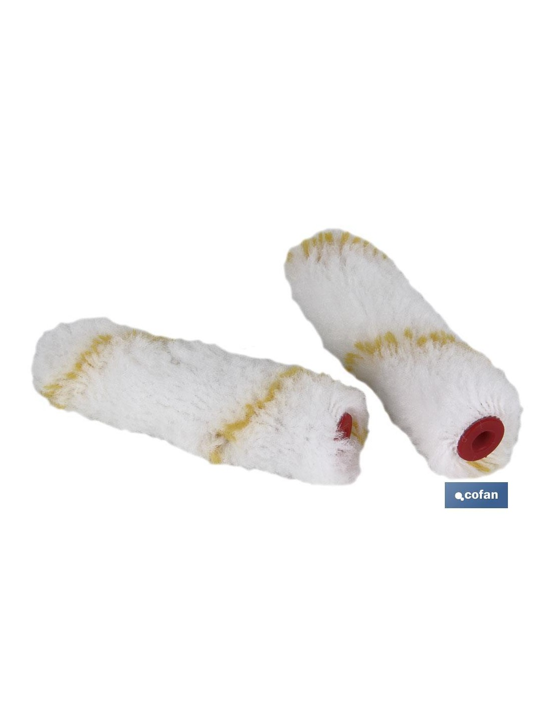 Pack de 2 recambios para mini rodillo fabricados en microfibra que proporciona una mayor resistencia y acabados profesionales. Está recomendado para pintar en paredes y superficies lisas. Gracias a los materiales en los que está fabricado, es apto para todo tipo de pintura en base disolvente y en base acuosa. Con los recambios de rodillo de Cofan tendrás el mejor acabado superficial sin esfuerzos añadidos.