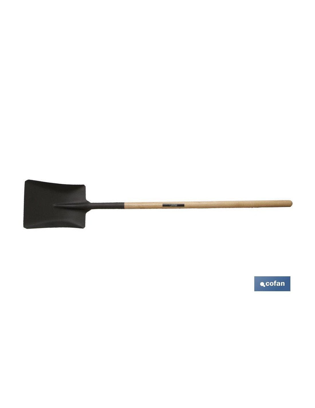 Pala cuadrada de acero sin puño, medidas en 335x245x1400mm y 340x285x1030mm