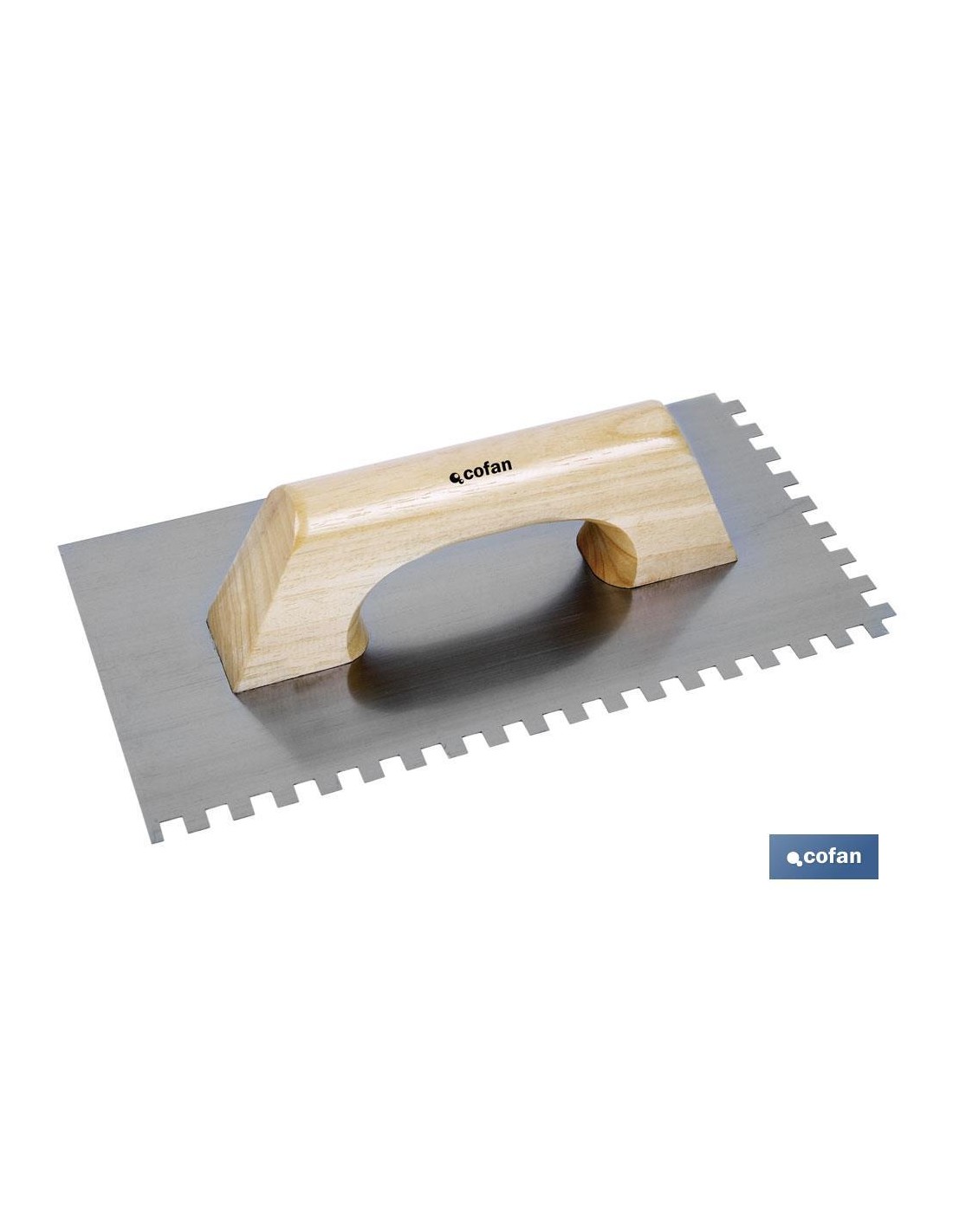 Paleta de construcción modelo llana dentada. Las medidas son 275 x 115 mm de longitud y el dentado de 8 x 8 mm. La hoja es de acero inoxidable, de alta calidad y resistencia, su mango es de madera muy suave y ergonómica. La llana es muy ligera, no se rompe ni se deforma. Puede usarse para varios trabajos dentro de la construcción como la colocación de baldosas y trabajos de enlucido. Está diseñada para facilitar el trabajo en el sector de la construcción.