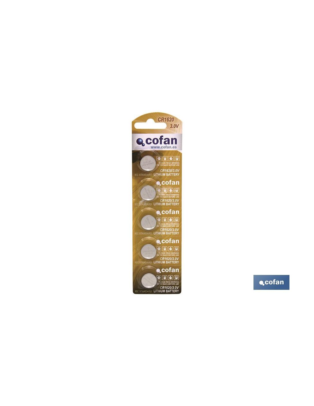 Pilas Botón modelo CR1620/3.0V. Pilas de Litio en blíster de 5 unidades modelo CR1620 con potencia de 3.0v.