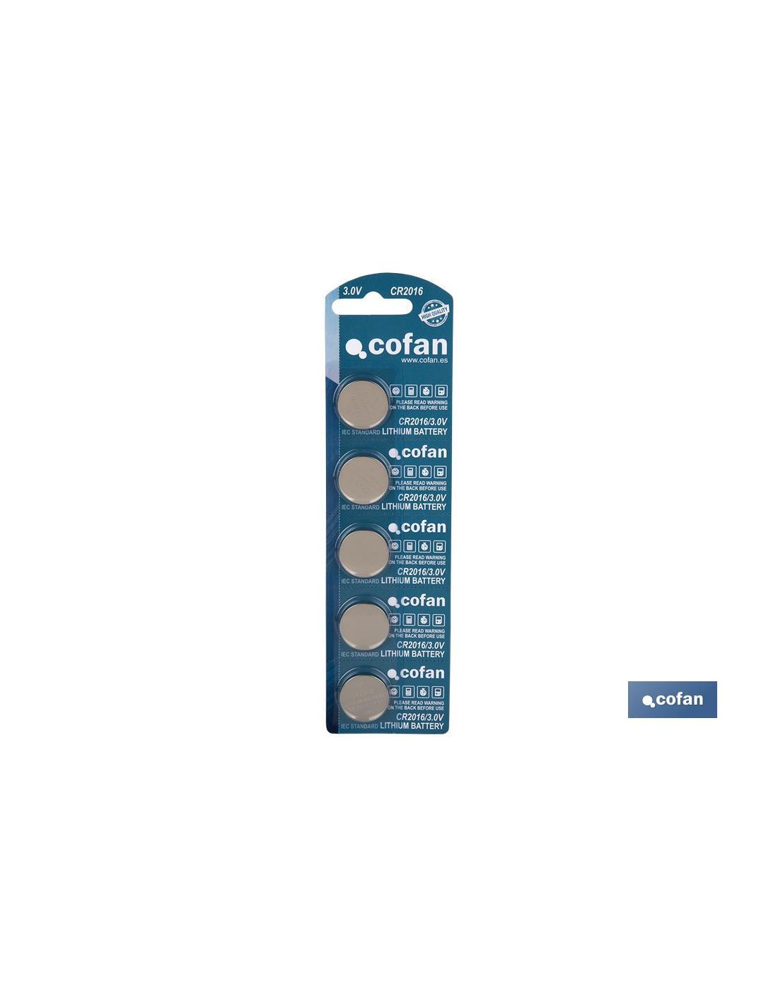 Pilas Botón modelo CR2016/3.0V. Pilas de Litio en blíster de 5 unidades modelo CR2016 con potencia de 3.0v.