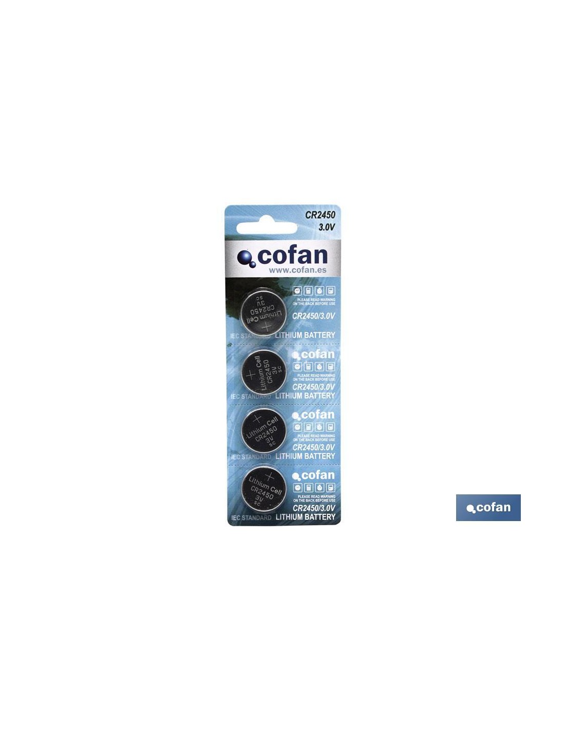 Pilas Botón modelo CR2450/3.0V. Pilas de Litio en blíster de 4 unidades modelo CR2450 con potencia de 3.0v