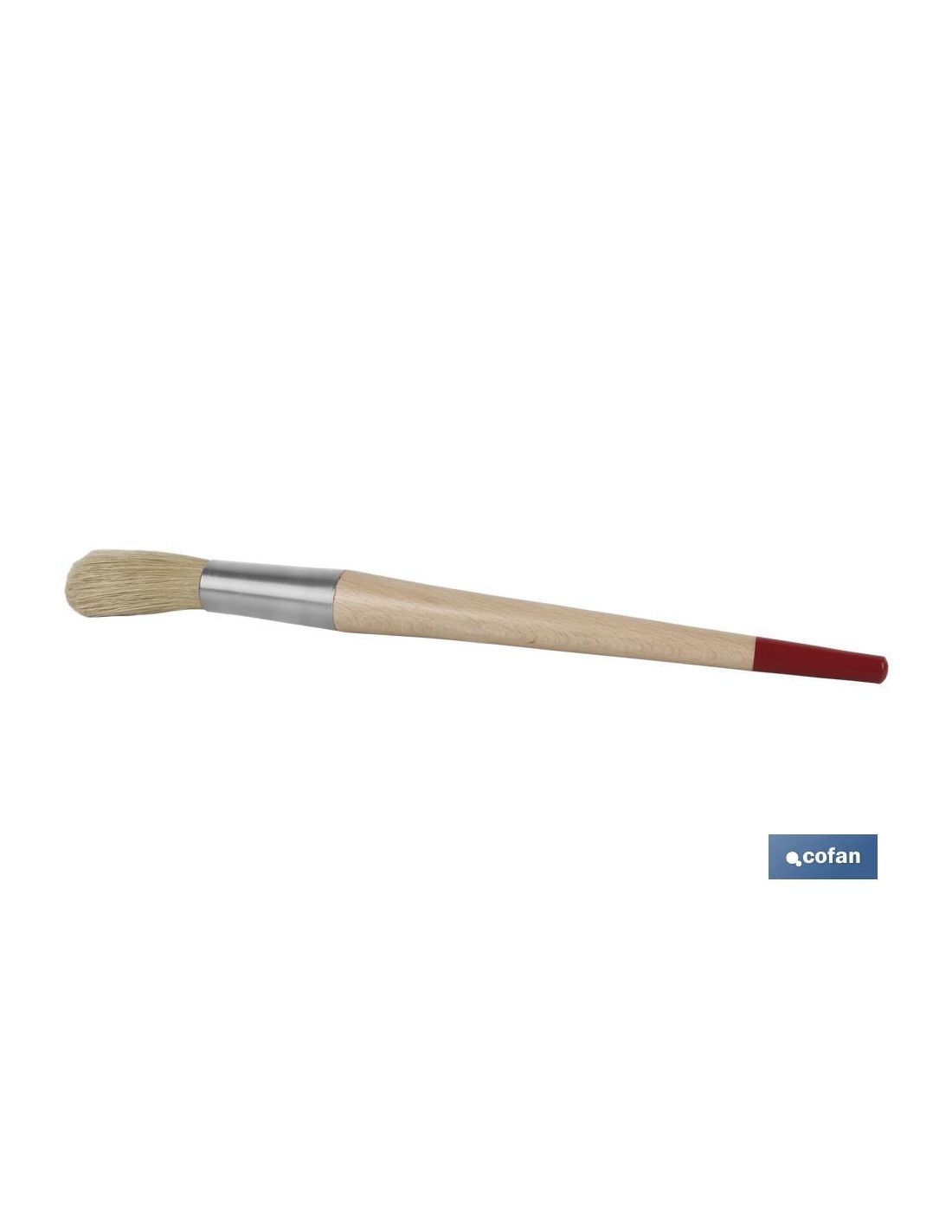 Pincel redondo para uso profesional con mango de madera encerada. Especialmente indicado para recortar y retocar las superficies pequeñas y más inaccesibles. Compatible con pinturas acrílicas, plásticas, esmaltes y barnices. Gracias a su diseño y los materiales en los que está fabricado, proporciona un acabado profesional sin realizar ningún esfuerzo.