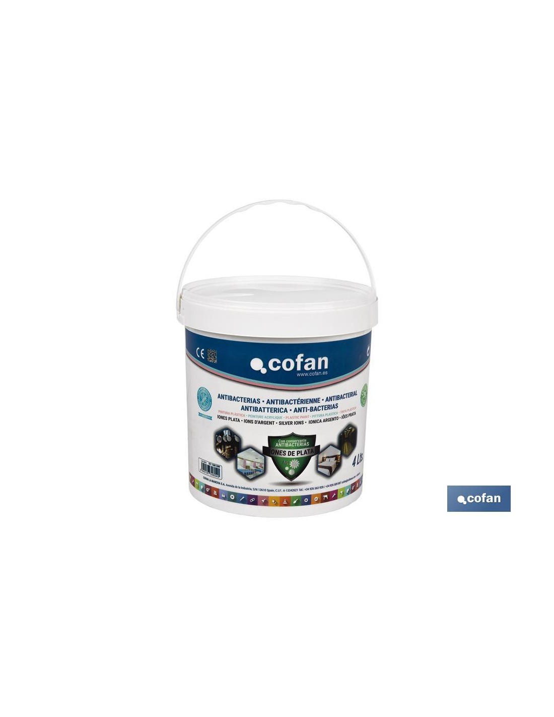 Bote de pintura plástica higienizante que contiene un conservante antimicrobiano basado en iones de plata, el cual ejerce sobre la película de pintura seca un efecto inhibidor y preventivo del crecimiento de bacterias de forma indefinida.Pintura idónea para aplicar en interiores con el fin de evitar el desarrollo de bacterias, hongos y microbios.Puede aplicarse sobre diferentes superficies de interior para conseguir un acabado de gran cubrición.Contamos con diferentes tamaños de botes de pintura plástica y su color es blanco.