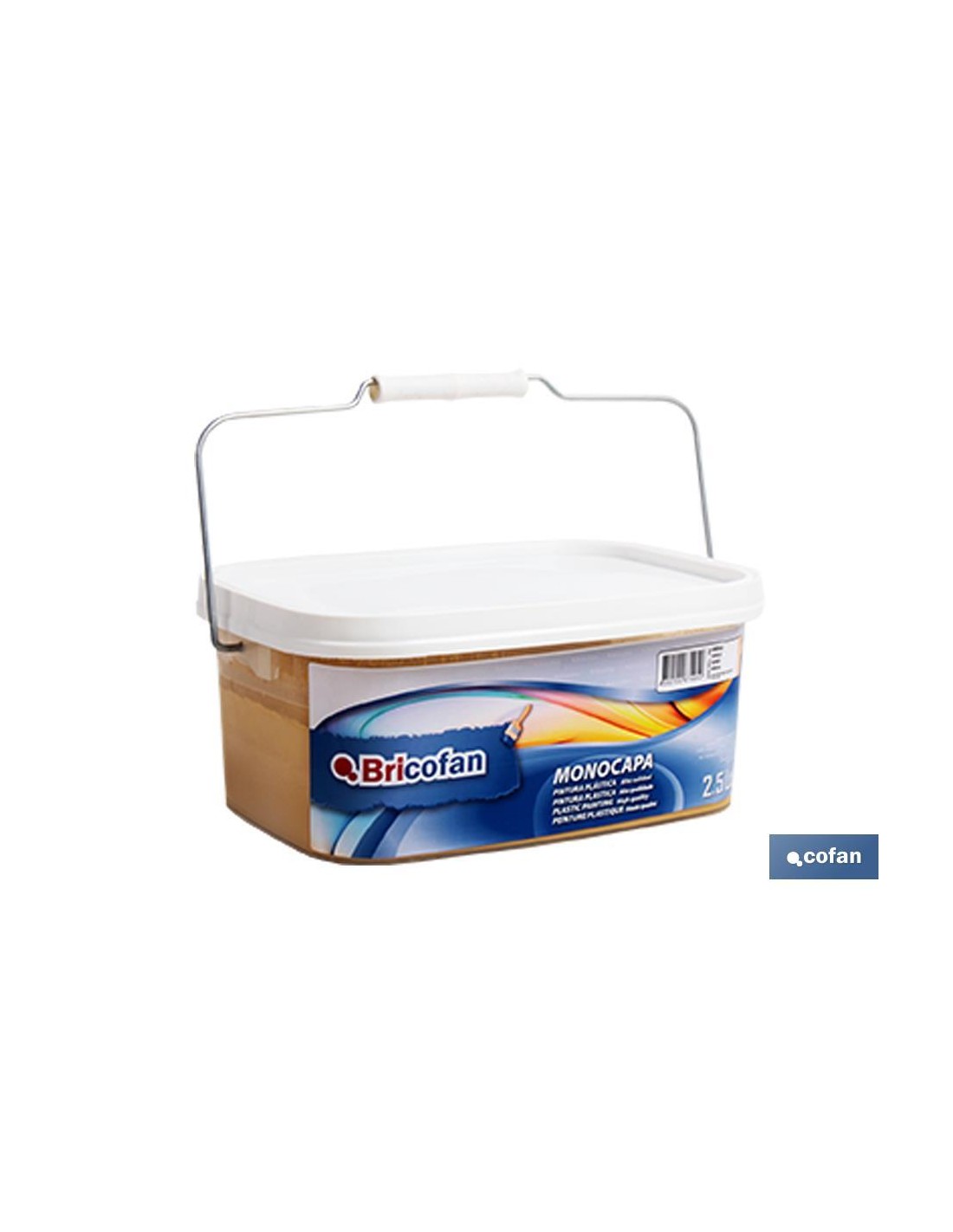 Pintura plástica monocapa de buena cubrición. Indicada para la decoración de interiores con un acabado de alta calidad. Aplicación en una sola mano y sin goteo. El tiempo de secado está situado en 1 hora para la primera capa y segundas manos en 12 horas. Temperatura mínima de aplicación: +5 °C. Temperatura máxima de aplicación: +30 °C. Especialmente formulada para aplicarla directamente sin necesidad de añadir agua y obtener una cubrición total en una sola mano. Con la pintura monocapa podrás decorar interiores como paredes, techos o pasillos entre otros.