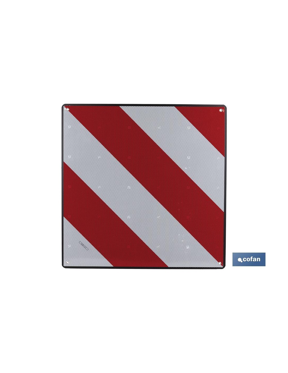 Panel de señalización V20 homologado y fabricado en ABS destinado para la señalización de la carga que sobresale por la parte trasera de cualquier vehículo como camión, furgoneta, caravana, turismo o cualquier extensión acoplada al vehículo como un portabicicletas.Esta señal de advertencia se puede usar en toda Europa para garantizar un transporte seguro. El material del que está fabricado es flexible y cuenta con unas perforaciones en las puntas diseñadas para facilitar y agilizar mucho más su sujeción. Medidas: 50 x 50 centímetros.