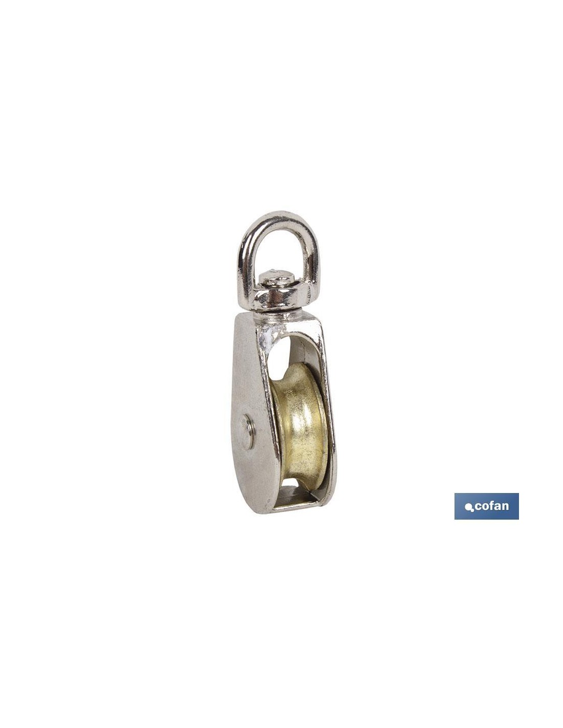Poleas simples giratorias. Poleas de una roldana con medidas de diámetro desde 12 hasta 40 mm.