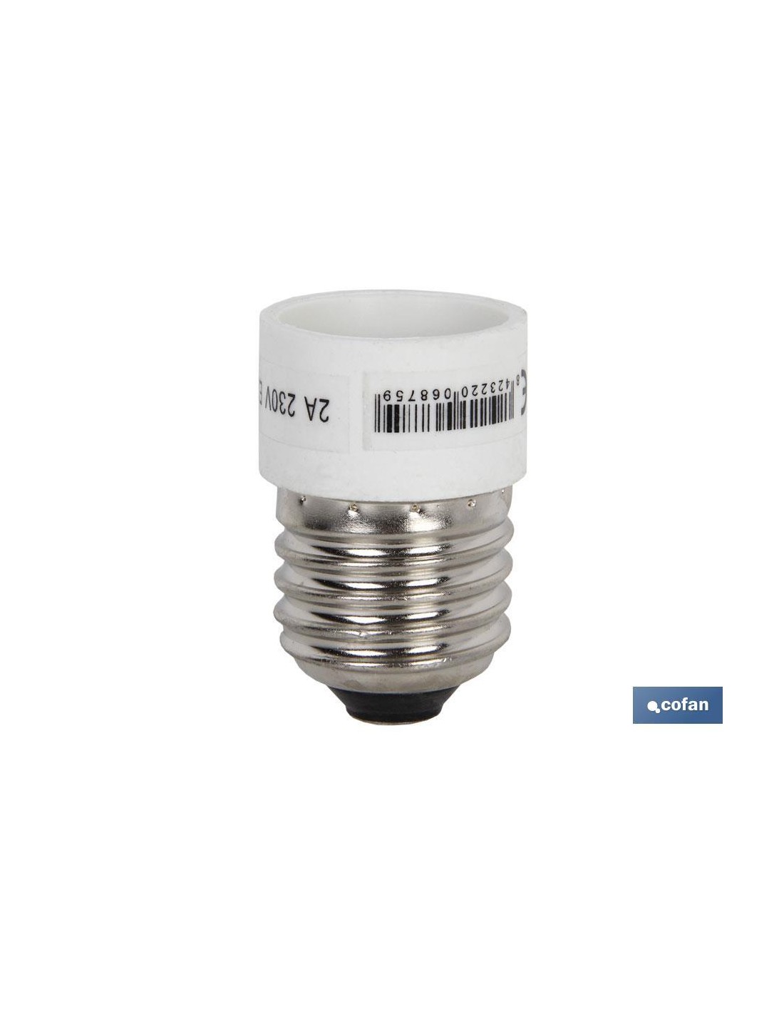Portalámparas adaptador. De E27 a E14. 2 A - 250 V~. Color blanco. Aplicaciones habituales: Entorno doméstico y terciario interior (Interior de vivienda, oficinas, comercios, etc.). Material termoplástico.