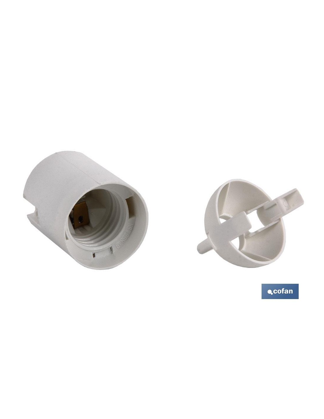 Portalámparas para obra, con rosca tamaño E-27. Material de fabricación de resina termoestable, de color blanco. 4 A - 250 V.