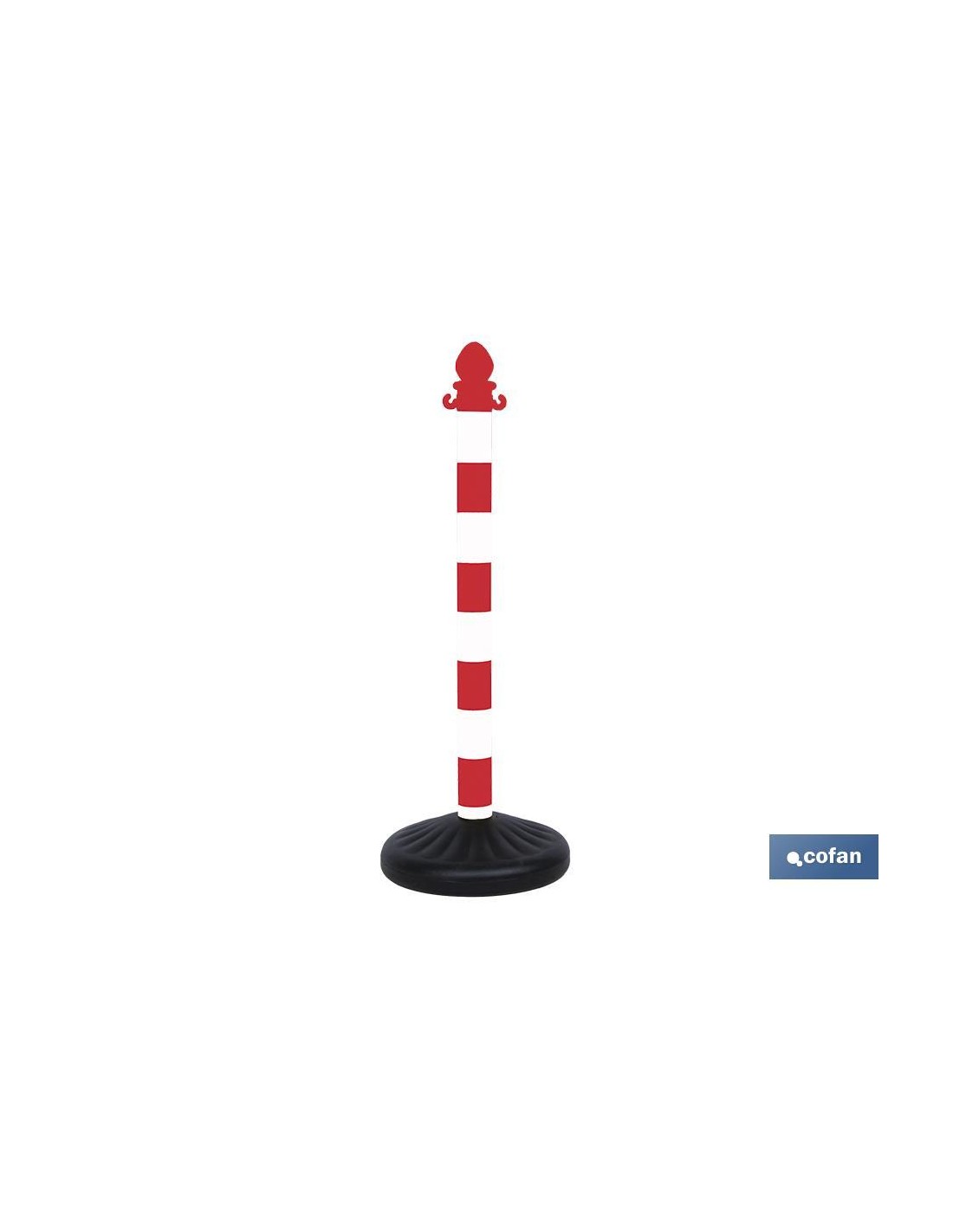 Poste para cadena de plástico con base incluida en color rojo y blanco con un metro de altura total.