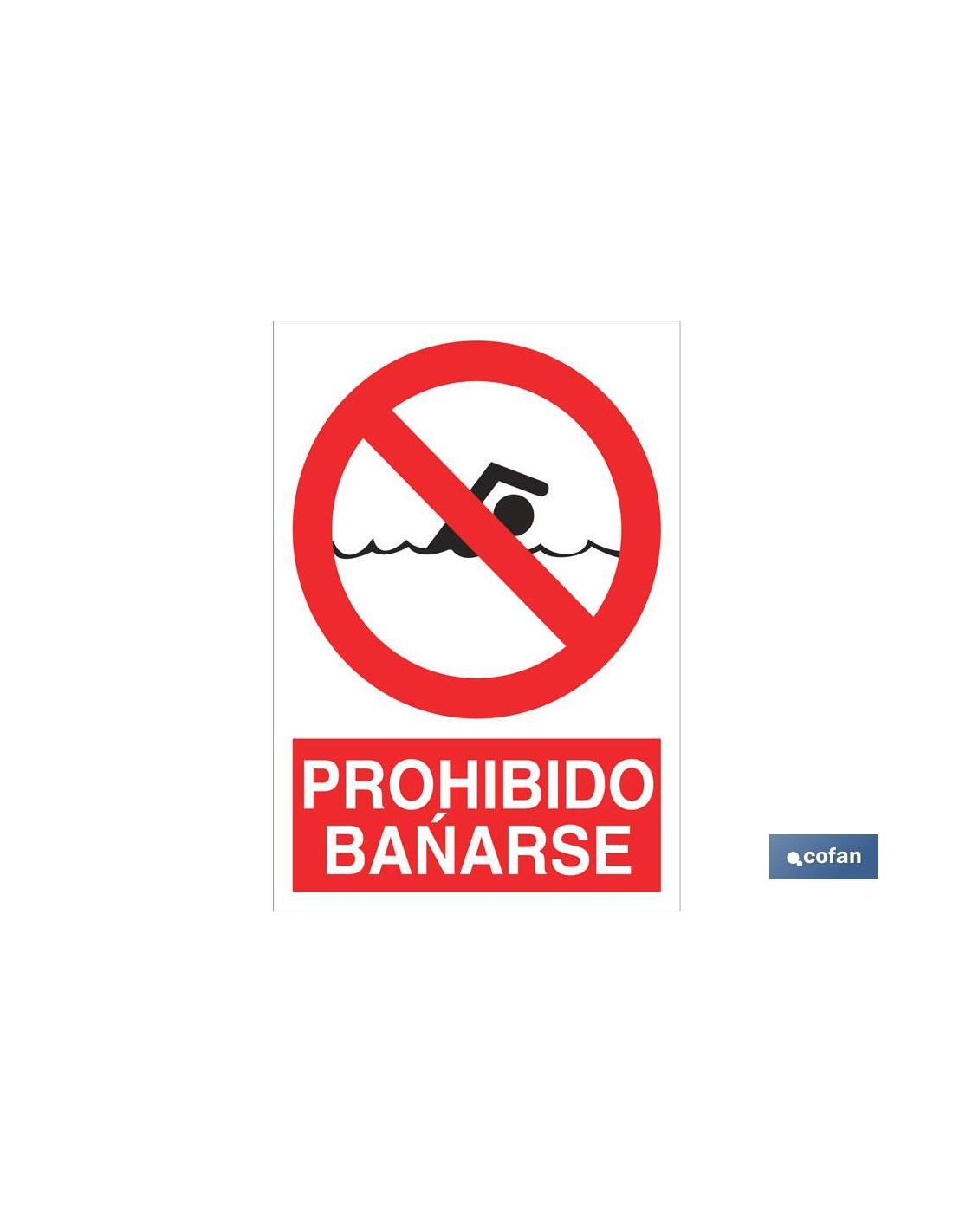 Señal de prohibición, prohibido bañarse. El diseño de la señal puede variar, pero en ningún caso se variará el significado de la misma.