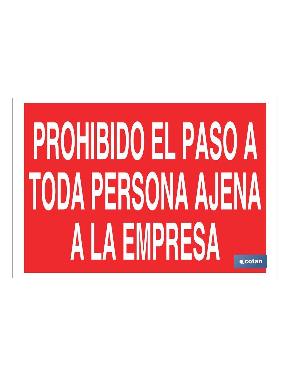 Señal Texto prohibido paso a persona ajena a la empresa en varias medidas y materiales. El diseño de la señal puede variar, pero en ningún caso se variará el significado de la misma.