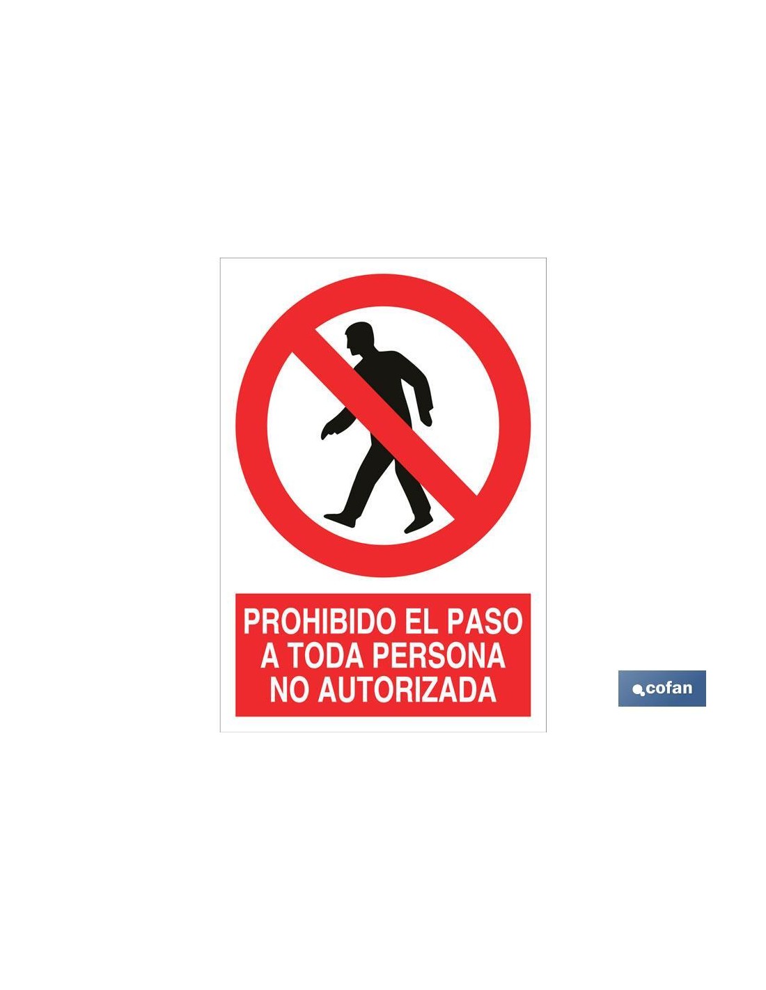Señal Pictograma y Texto prohibido paso a persona no autorizada en varias medidas y materiales. El diseño de la señal puede variar, pero en ningún caso se variará el significado de la misma.