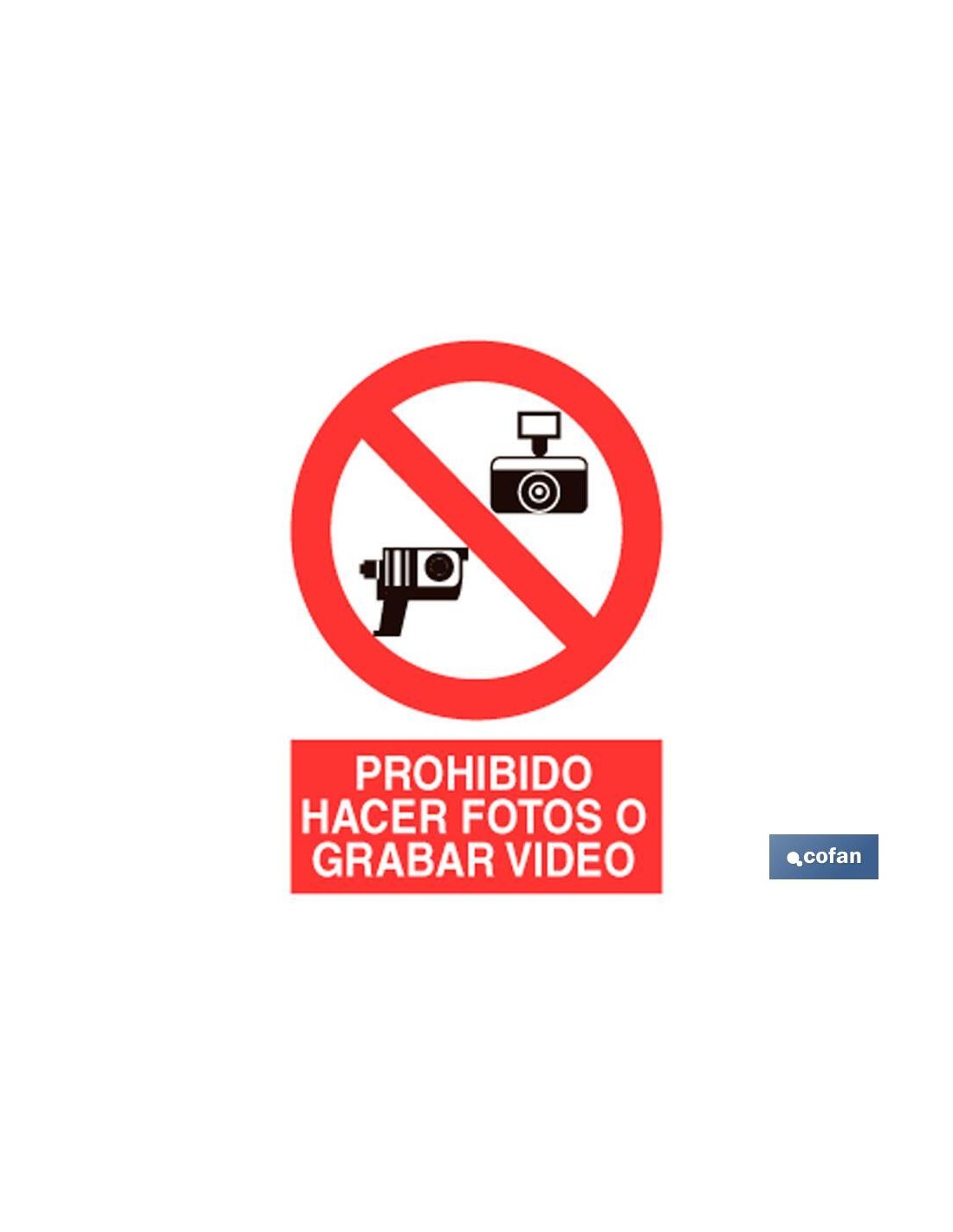 Señal Pictograma y Texto prohibido fotos y video en varias medidas y materiales. El diseño de la señal puede variar, pero en ningún caso se variará el significado de la misma.