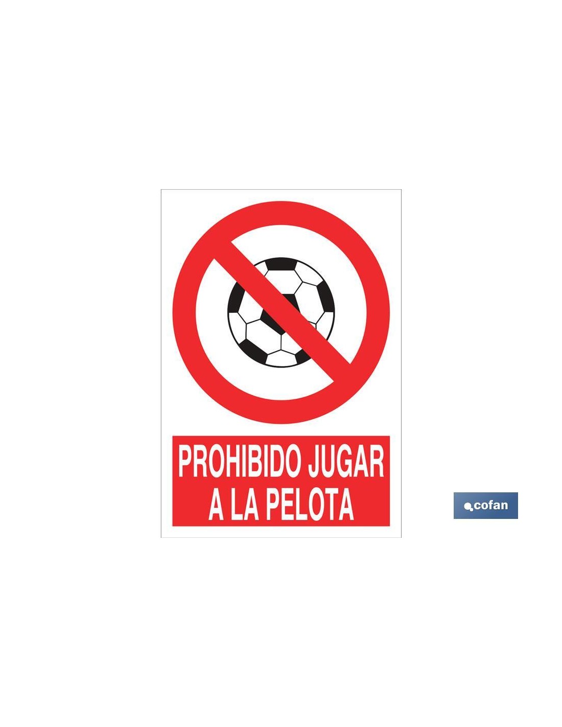 Señal Pictograma y Texto prohibido jugar al balón en varias medidas y materiales. El diseño de la señal puede variar, pero en ningún caso se variará el significado de la misma.