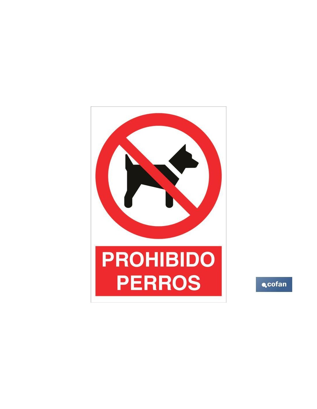 Señal Pictograma y Texto prohibido perros en varias medidas y materiales. El diseño de la señal puede variar, pero en ningún caso se variará el significado de la misma.
