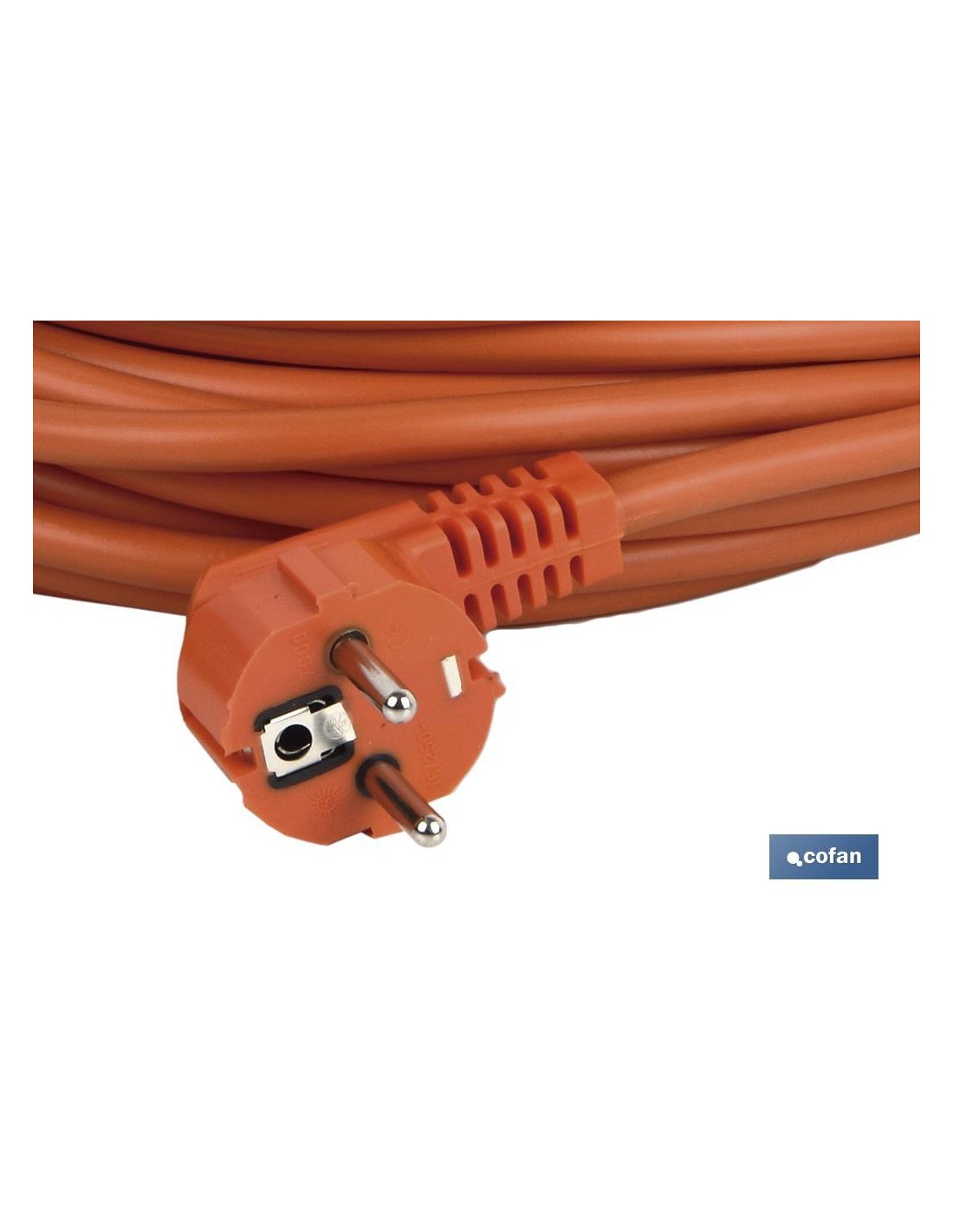 Prolongador o alargadera bipolar, con toma de tierra lateral. El cable es de color naranja y su sección es de 3G 1 x 5 mm2. La longitud del cable está disponible en dos medidas, de 10 y 25 metros. Es apto para exteriores o jardines debido a su gran resistencia a condiciones climatológicas adversas IP 44.