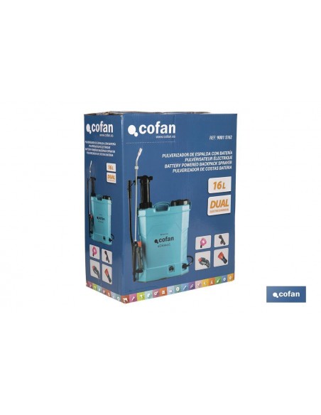 Pulverizador de espalda con capacidad de 16 litros ideal para llevar a cabo trabajos agrícolas y de jardinería, ya sea en viveros, plantaciones, árboles y mantenimientos generales, ofreciendo la eficiencia y durabilidad necesarias para mantener los espacios verdes y en óptimas condiciones. Equipado con una batería de litio de 12 V y 8 amperios, este pulverizador ofrece un uso dual: manual y automático, brindándote flexibilidad y comodidad en cualquier situación. Su batería recargable y sustituible garantiza un funcionamiento continuo de hasta 3 o 6 horas. Cuenta con una lanza de acero inoxidable, con una longitud de 60 cm, y 4 boquillas indicadas para proporcionar la precisión y versatilidad necesarias para diferentes aplicaciones, desde herbicidas hasta el cuidado de viveros y plantaciones. Además, cuenta con correas ajustables y acolchadas para una mayor comodidad, junto con una zona trasera transpirante que asegura una experiencia de uso confortable durante largas jornadas. Este pulverizador tiene integrado un indicador del estado de carga con regulador de potencia diseñados para transmitir información sobre el rendimiento de la batería, garantizando una operación sin interrupciones. Obtén este pulverizador, ya que, gracias a su batería de litio, hace que esta herramienta sea más ligera y manejable para ofrecer mayor comodidad durante largas jornadas de trabajo.