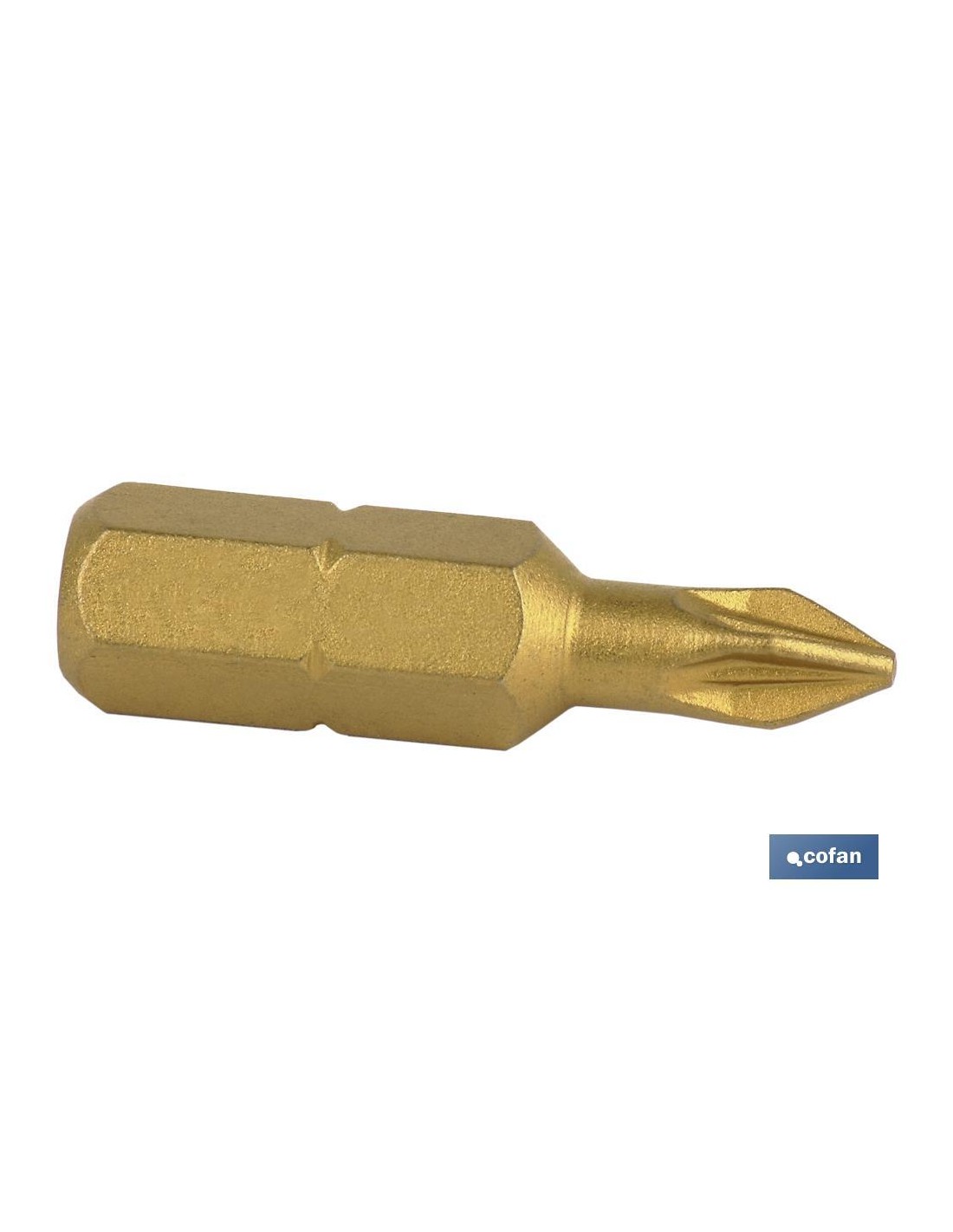 Puntas titanio pozidrive de atornillar en 1/4", con huellas desde PZ-1 hasta PZ-3, versiones de 25mm y de 50mm